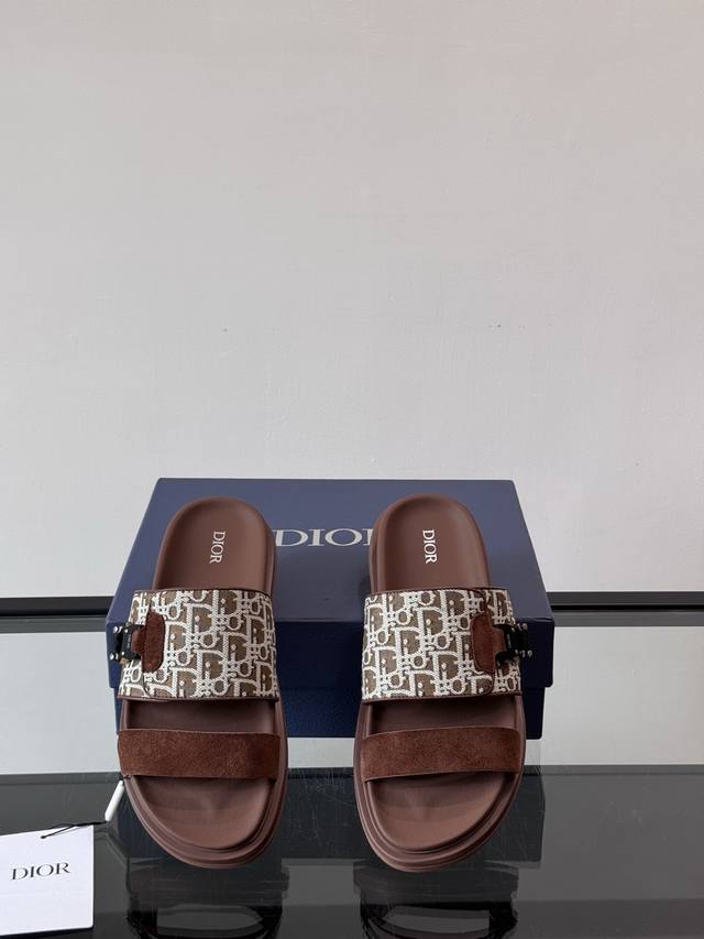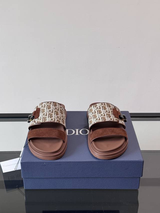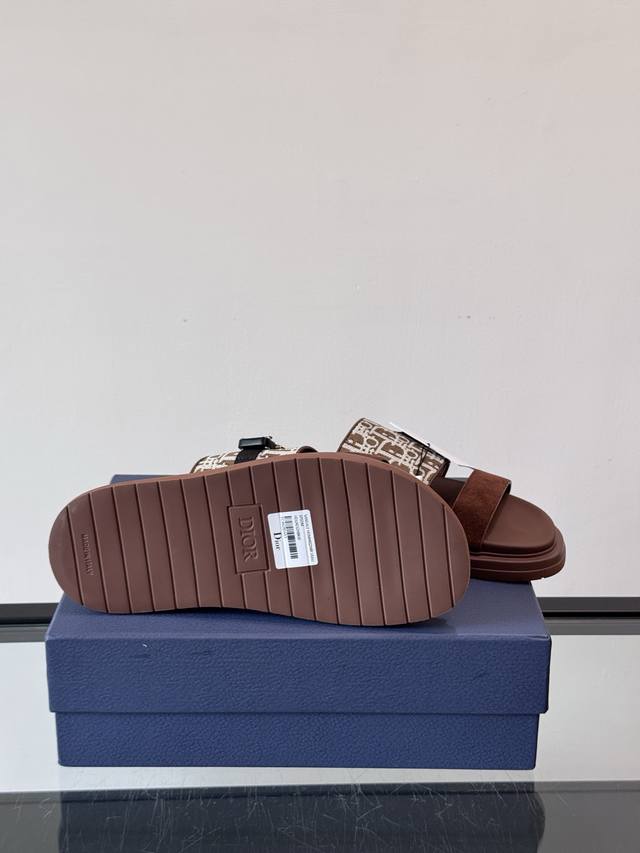 调工厂p价 男装男鞋 运动原单 Dior 男士凉鞋拖鞋。展现 Dior 高订风格设计。迪奥灰绒面革饰带点缀以铝质 Dior 搭扣提升格调。搭配舒适的同色调凹口鞋底,可与短裤或牛仔裤轻松搭配,打造精致造型。主体:绒面牛皮革,科技面料里料:牛皮革,搭配可调节饰带搭配铝质 Dior 搭扣迪奥灰 Eva 内底