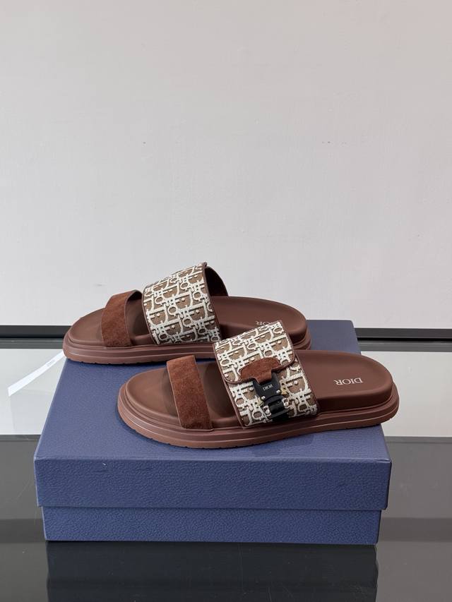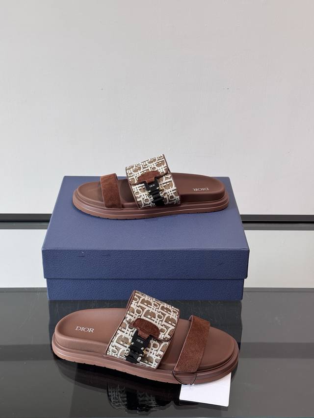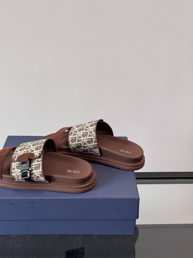 调工厂p价 男装男鞋 运动原单 Dior 男士凉鞋拖鞋。展现 Dior 高订风格设计。迪奥灰绒面革饰带点缀以铝质 Dior 搭扣提升格调。搭配舒适的同色调凹口鞋