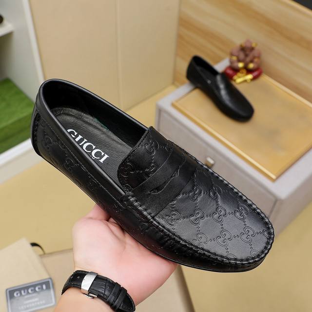Gucci 古驰-高端品质 配全套包装-鞋面荔纹小牛皮古奇专用材料-内里 垫脚 顶级羊皮-大底 超轻tpr-橡胶 双色成型大底-超高品控...