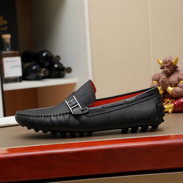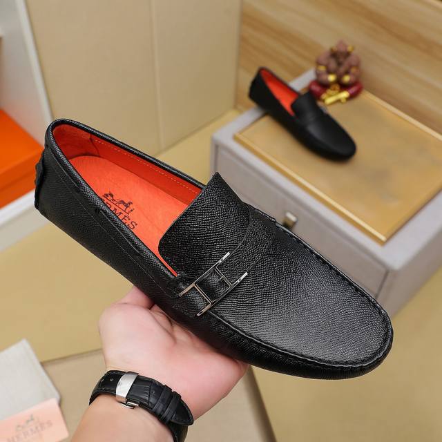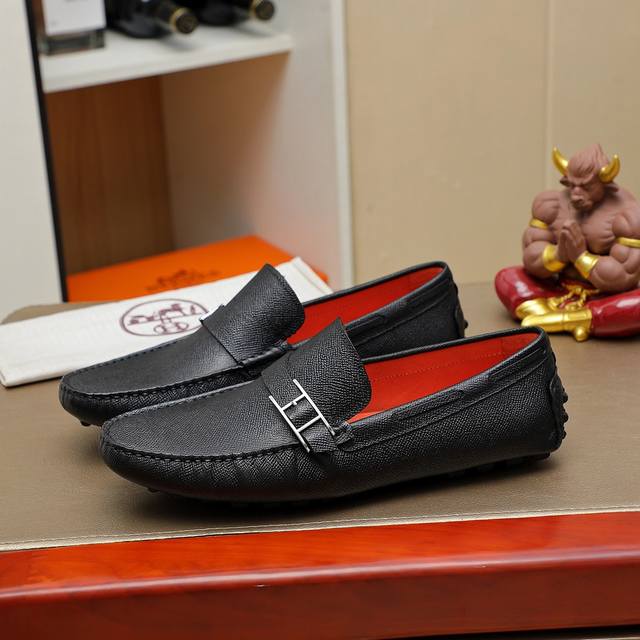 调工厂p价 男装男鞋 运动原单 Hermes 爱马仕专柜同款经典套脚鞋1:1开模原单品质采用进口头层牛皮猪皮内里超高档男鞋皮鞋沉实稳重 非常特别 色,码数38-44 45.46 47订做