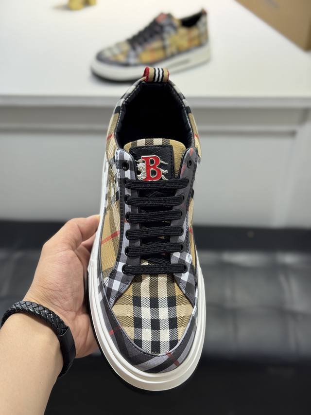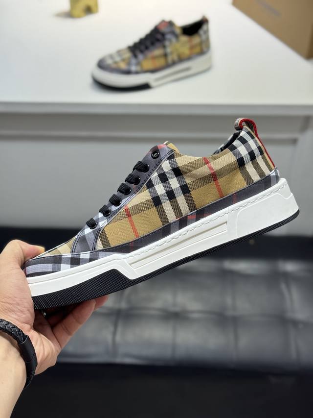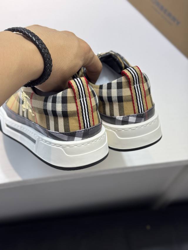 / burberry* 原单品质 2025新款巴宝莉家男士经典低帮运动鞋,以 Vintage 复古格纹棉搭配牛皮材质焕新演绎,装饰焕新的品牌徽标。羊皮内里,耐磨防滑