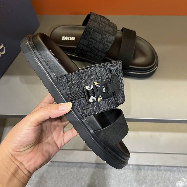 dior 男士凉鞋拖鞋。展现 Dior 高订风格设计。迪奥灰绒面革饰带点缀以铝质 Dior 搭扣提升格调。搭配舒适的同色调凹口鞋底,可与短裤或牛仔裤轻松搭配,打造精致造型。主体:绒面牛皮革,科技面料里料:牛皮革,搭配可调节饰带搭配铝质 Dior 搭扣迪奥灰 Eva 内底