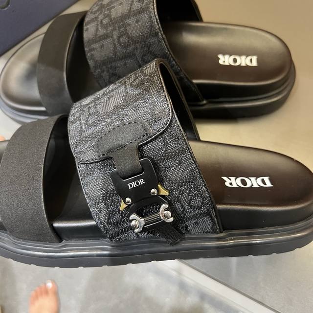 / dior 男士凉鞋拖鞋。展现 Dior 高订风格设计。迪奥灰绒面革饰带点缀以铝质 Dior 搭扣提升格调。搭配舒适的同色调凹口鞋底,可与短裤或牛仔裤轻松搭配,打