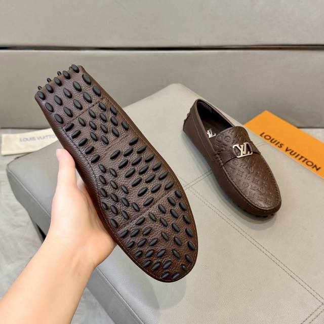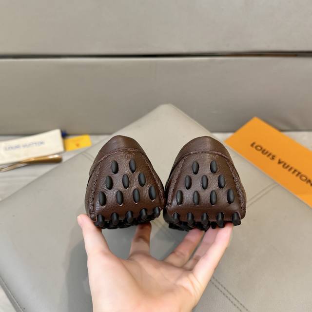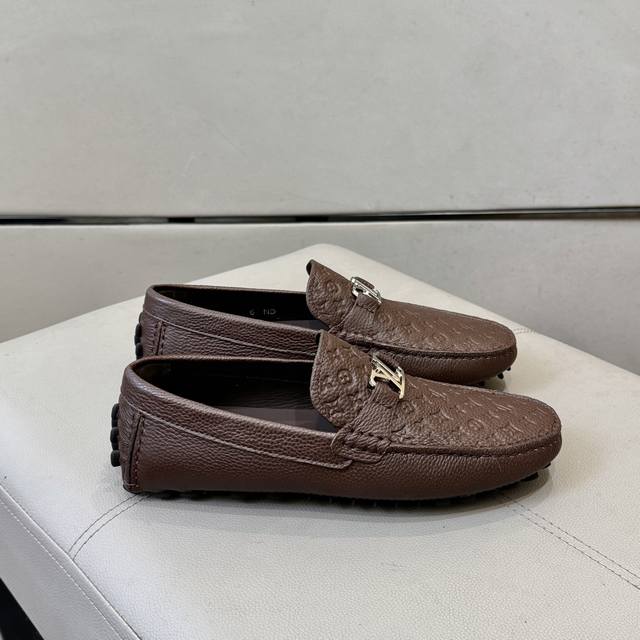 L 家 男士豆豆鞋 2025官网同步 市场顶级版本 进口头层荔枝纹 压花棕色牛里 原版包装 。尺码38-45