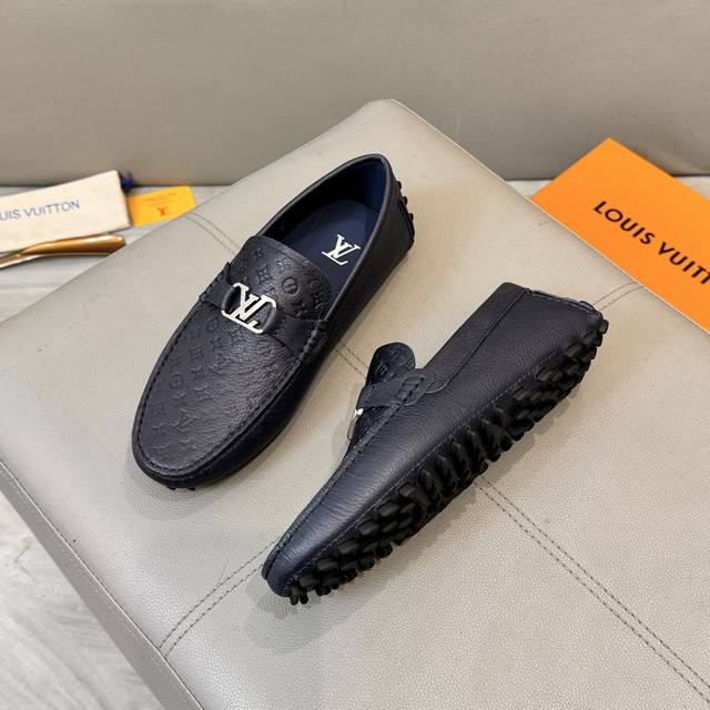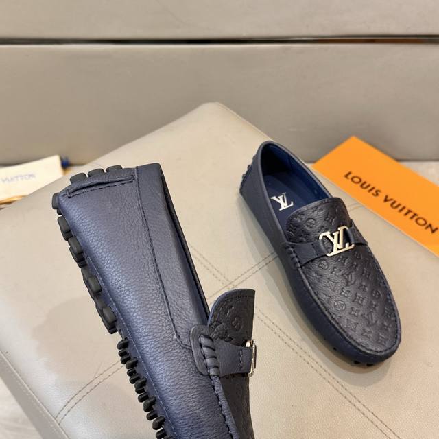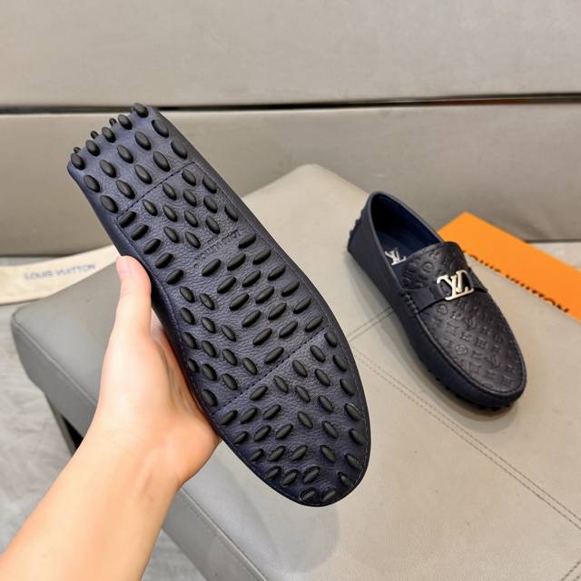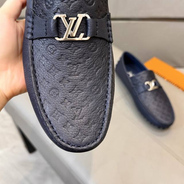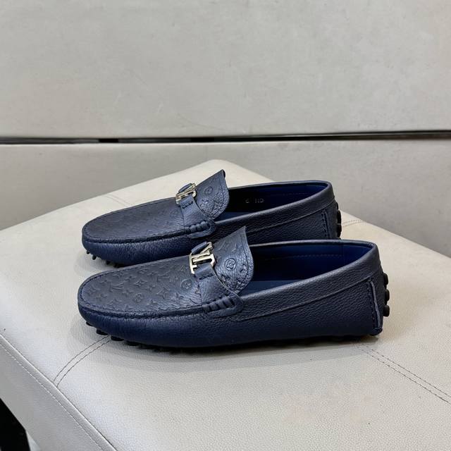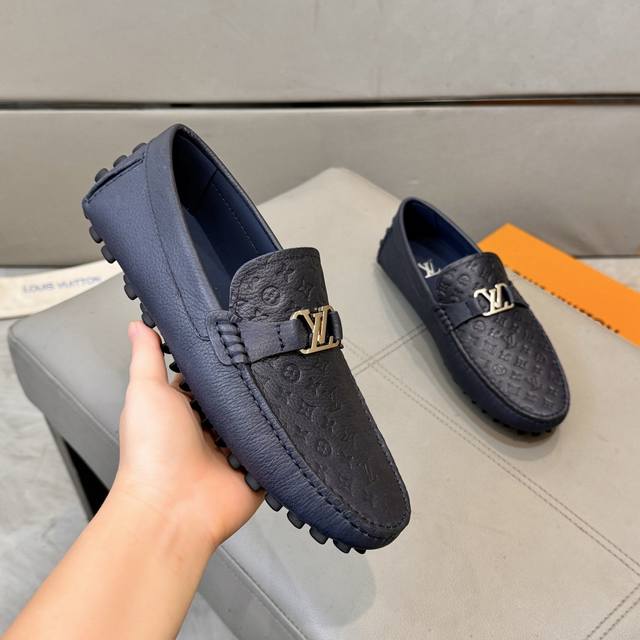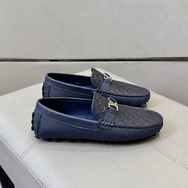 L 家 男士豆豆鞋 2025官网同步 市场顶级版本 进口头层荔枝纹 压花蓝色牛里 原版包装 。尺码38-45