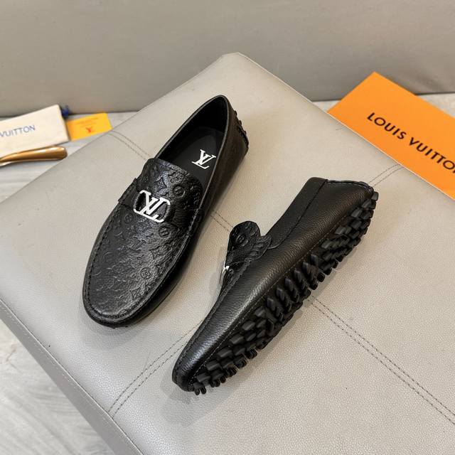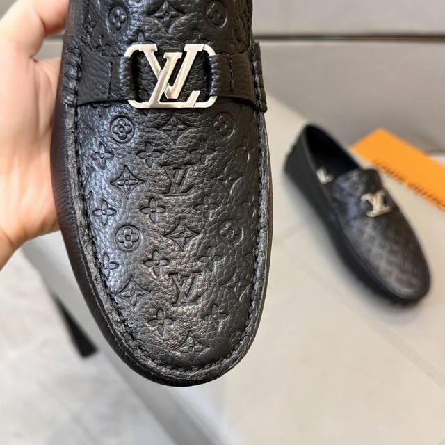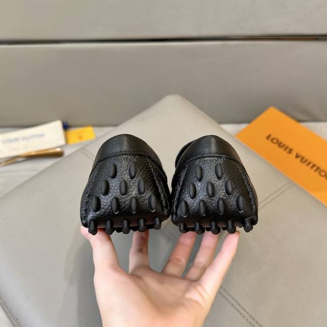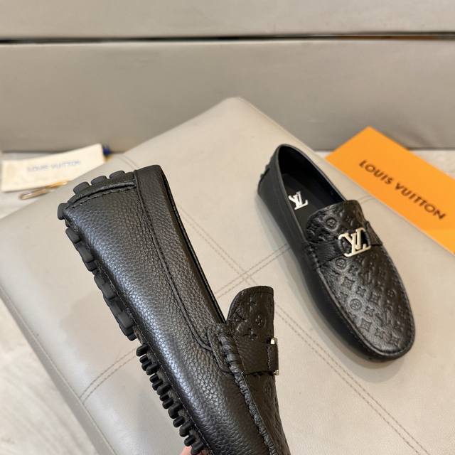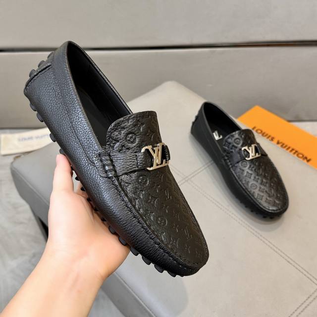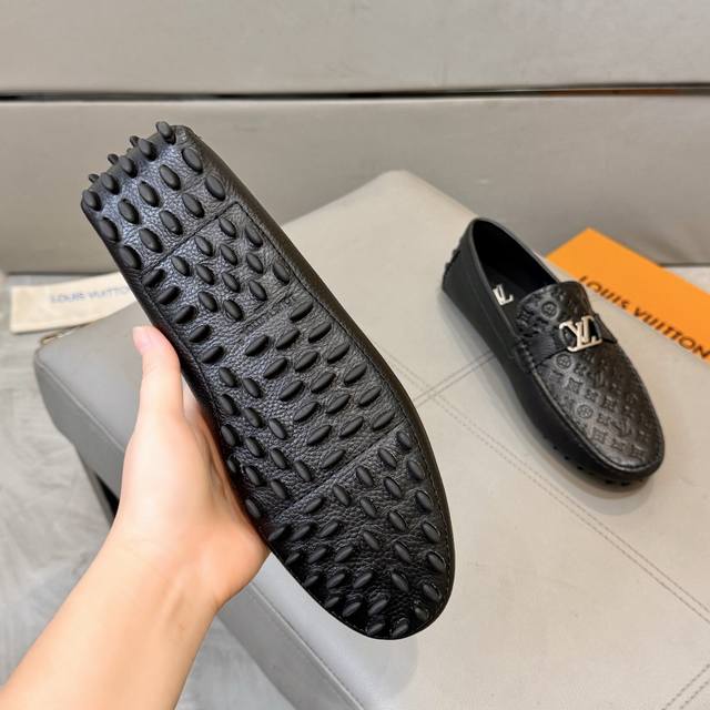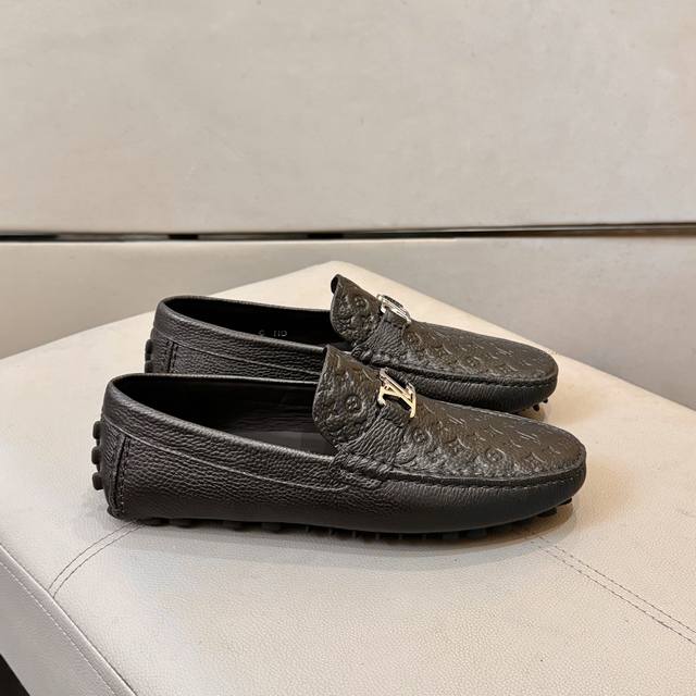 L 家 男士豆豆鞋 2025官网同步 市场顶级版本 进口头层荔枝纹 压花黑色牛里 原版包装 。尺码38-45