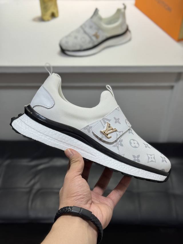 路易威登 潮流时尚不失低调男士休闲鞋,鞋面Lv牛皮,舒适透气,网布内里,原版橡胶大底,二色可选~型男必备。