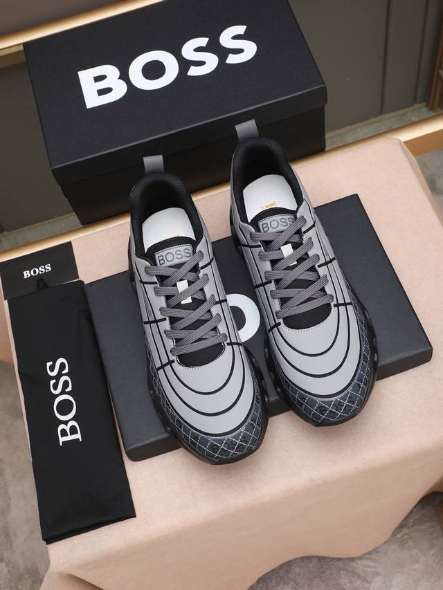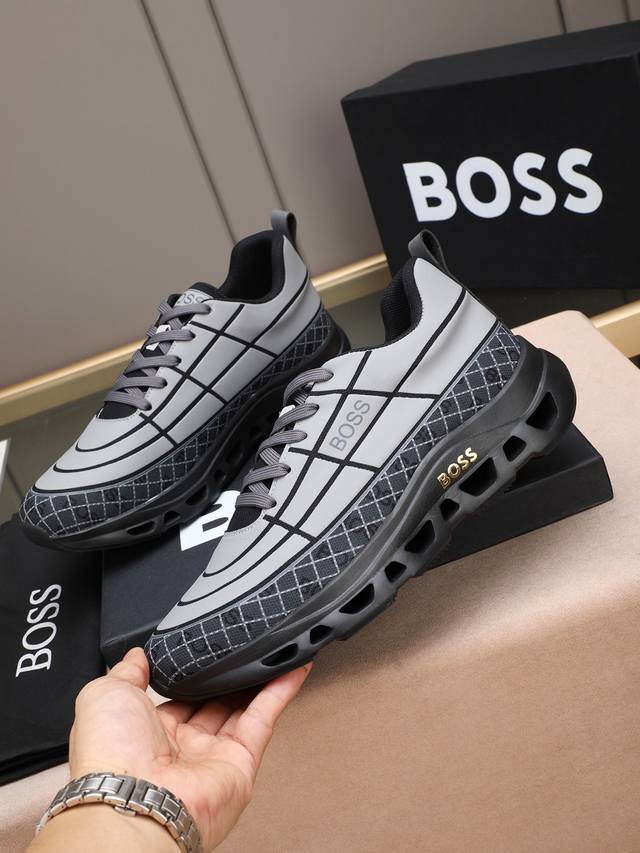 p Boss男士休闲运动鞋,进口滴胶接拼,纯棉透气网里不闷脚 上脚柔软舒适 Tpu大底脚感轻便! Size:38-44 45 定做