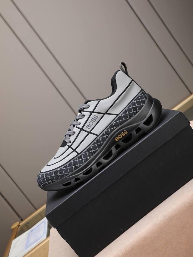 p Boss男士休闲运动鞋,进口滴胶接拼,纯棉透气网里不闷脚 上脚柔软舒适 Tpu大底脚感轻便!