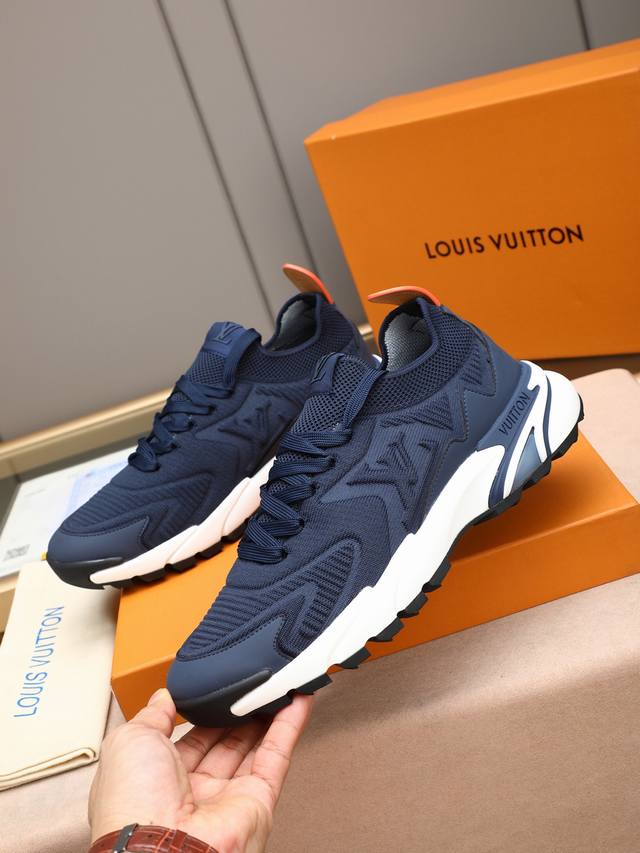 原版购入开发 做货 本款 Lv Runner Tatic 运动鞋融合飞织面料材质,演绎传统登山鞋的灵感启发。Lv 字母抒写于一侧,路易威登标识,轻盈耐磨的橡胶外底完善整体