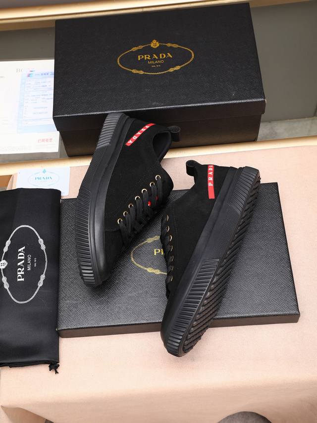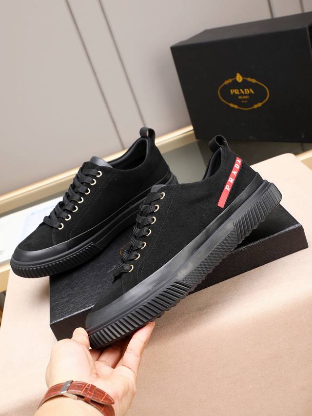 p prad*普拉达新品男士休闲鞋,这款休闲百搭,选用头层牛皮打造,橡胶大底,脚感非常舒适,运用柔和简洁的线条勾勒出运动风廓形。鞋底轻盈而稳固,鞋舌带有标志性Logo,效果彰显别具一格的魅力。Size:38-44 45定制 多色选!