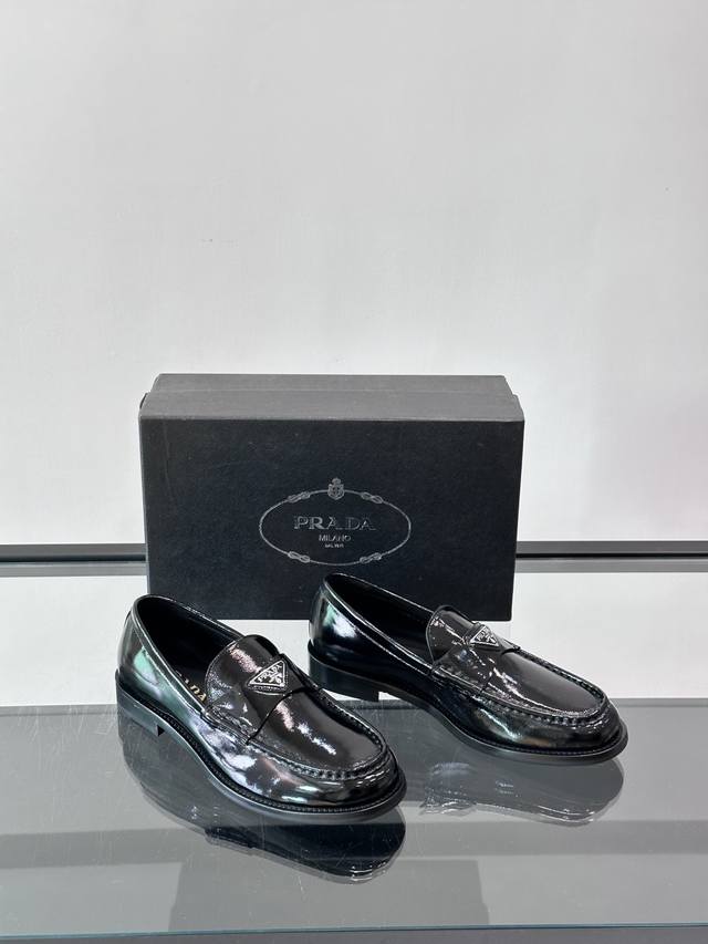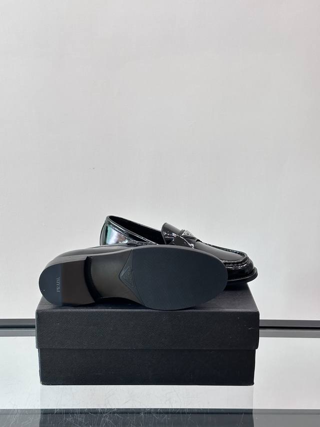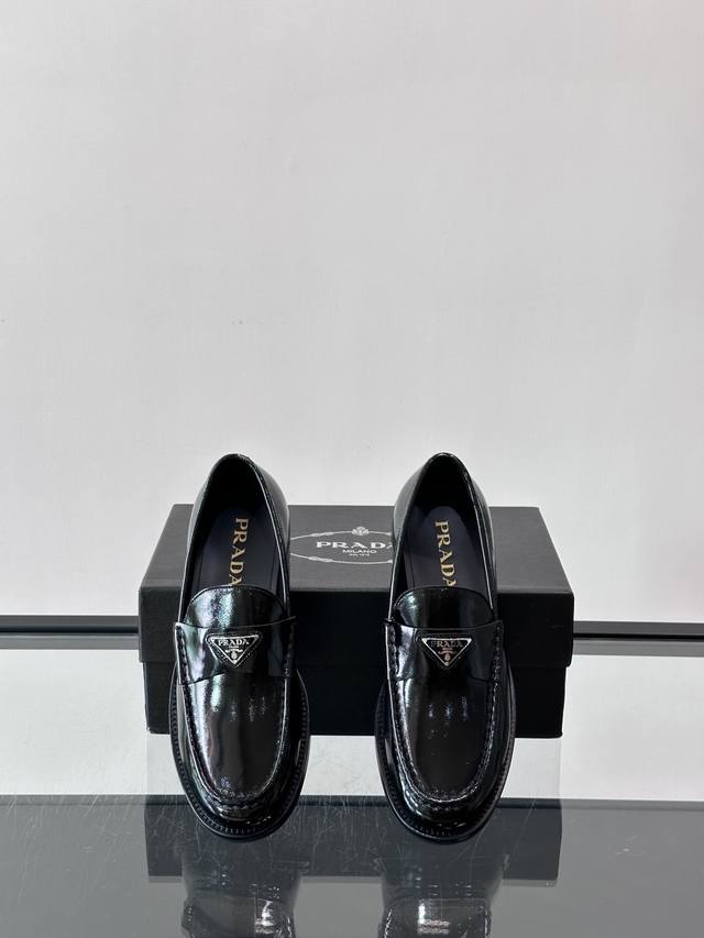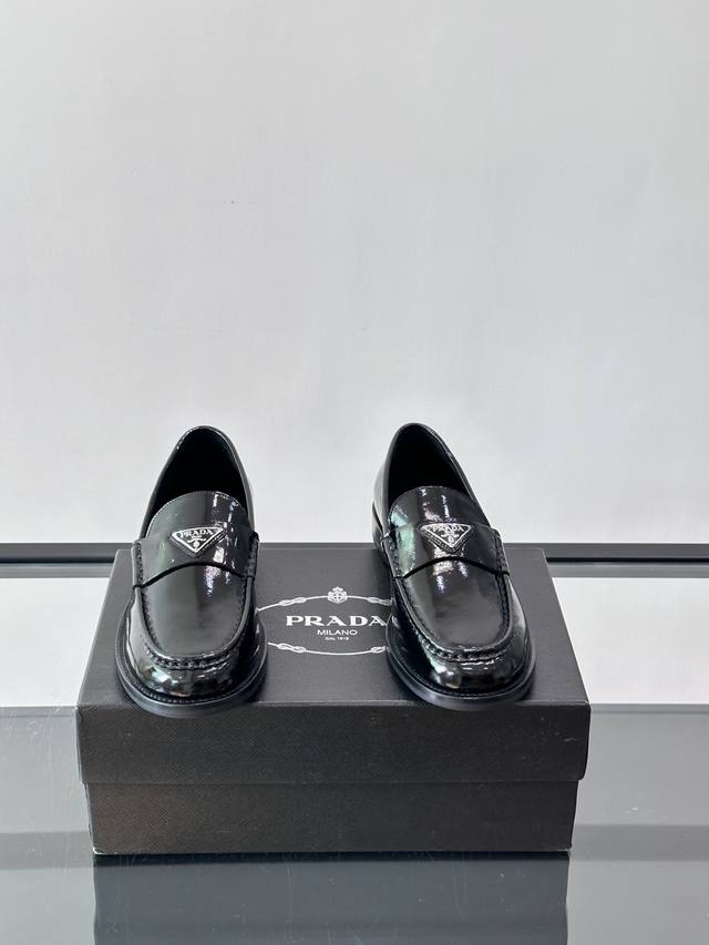 prada 普拉达新款亮面皮革皮鞋采用意大利进口开边珠鞋面,大块拼接设计,耐穿不变形,重工打造,精致马克缝线,同材质饰带装饰,融合经典和现代风格,内里本染小牛皮,标配prada徽标牛皮垫脚,原厂超轻磨砂纹理和凹凸纹真皮大底,轻便不累脚,减震效果极好,上脚舒适度拉满!