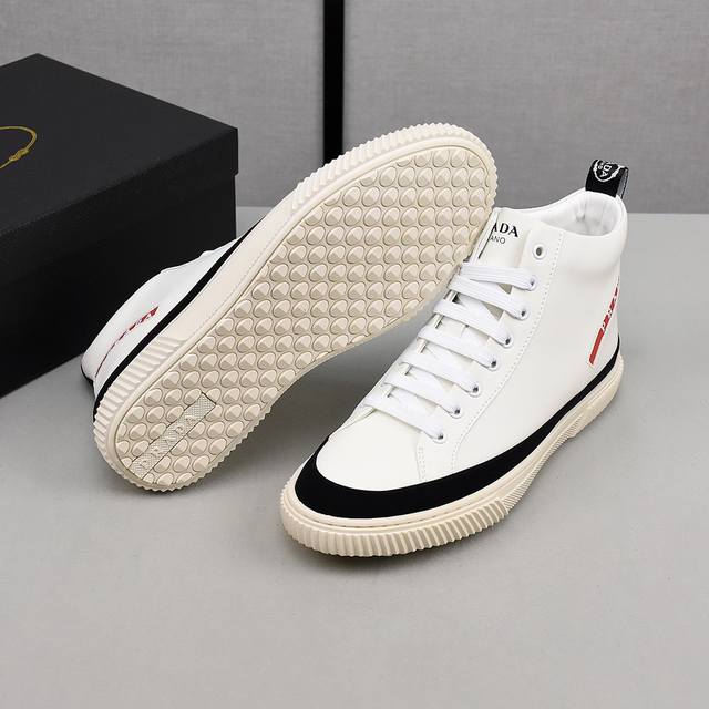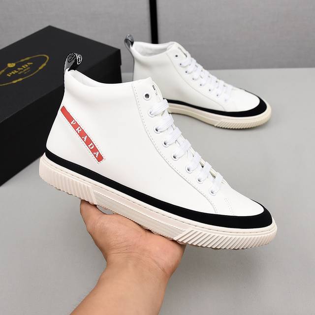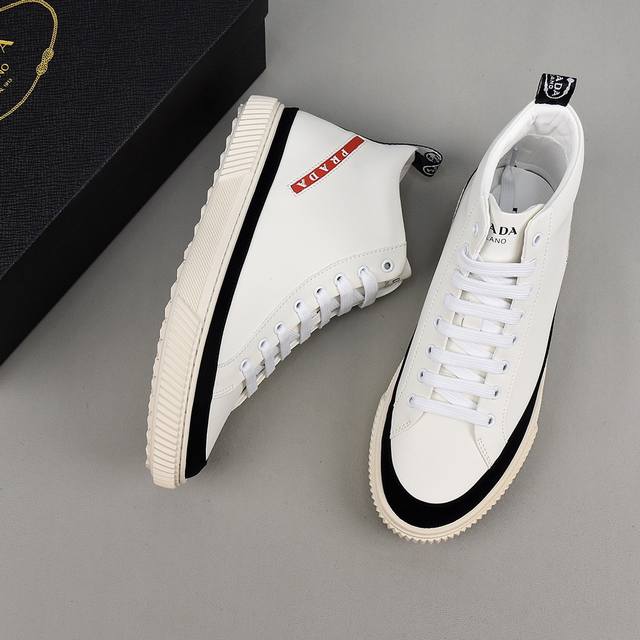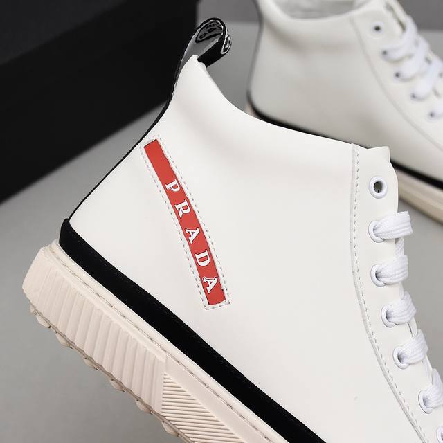prada 普拉达 高帮运动休闲鞋。 。鞋面采用牛皮,羊皮内里,橡胶大底,脚感舒适,男码38-44,按平时穿着码数选择。