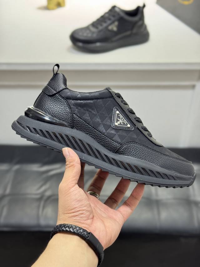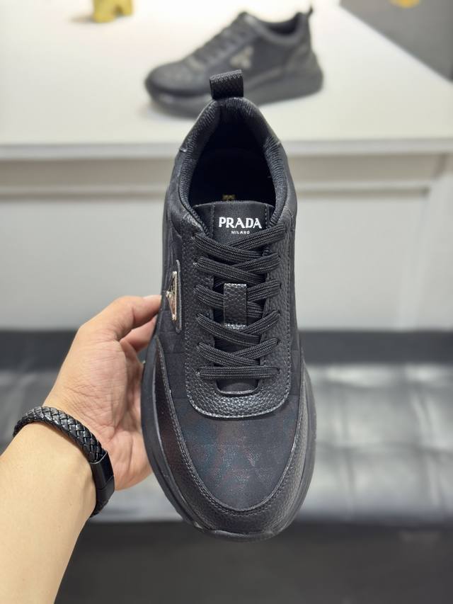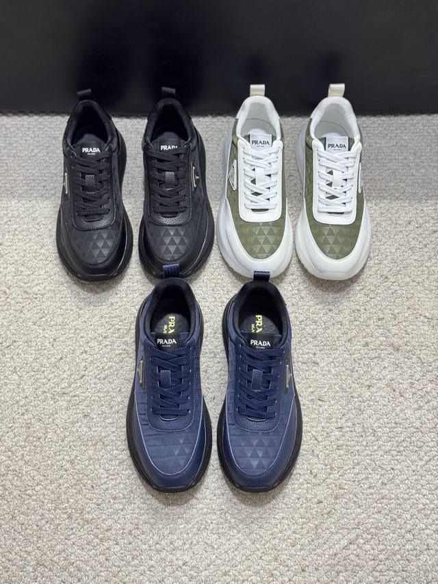 prada 普拉达 专柜最新款运动鞋出货 领先专柜款你懂的 。精选牛皮拼接面料制作而成。内里:网布内里。高端气垫开模防滑橡胶大底,精美线条、简约大气,上脚舒服上挡次、休闲旅游。