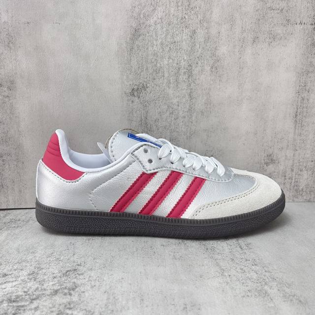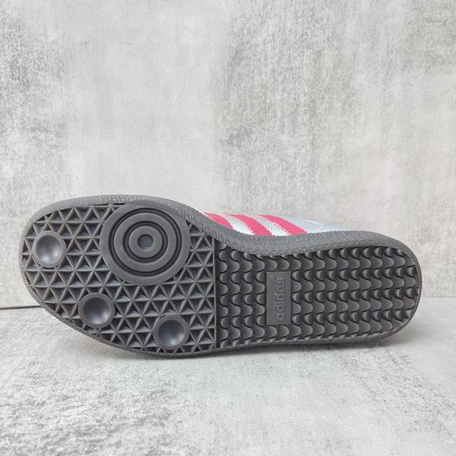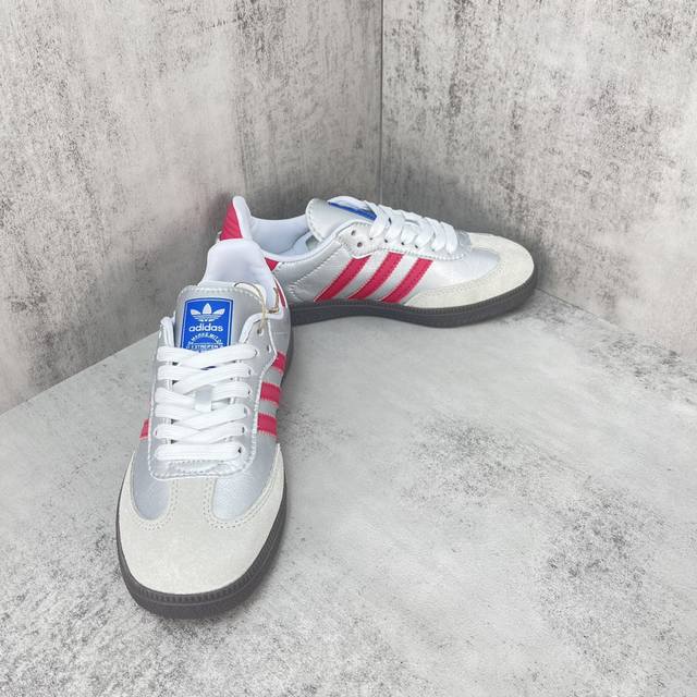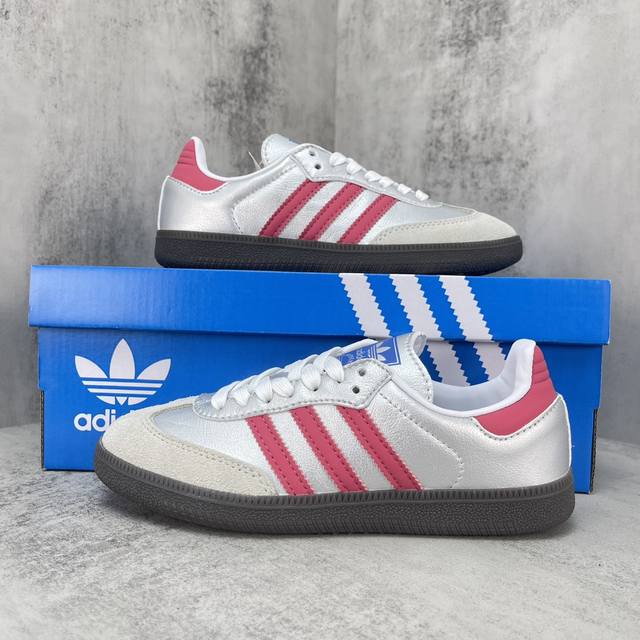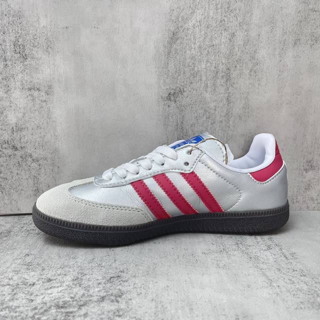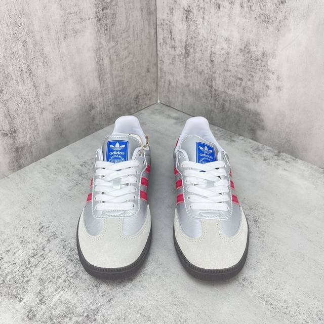 新款上架女鞋真标半码制#采用移膜牛剖革组合翻毛皮鞋面材质#外置耐磨橡胶大底带你回味最原始的永远经典,阿迪达斯 三叶草adidas Originals Samba Vegan Og Silver Deep Blue 桑巴舞系列绅士德训足球风百搭低帮休闲运动板鞋“太空银灰玫红焦糖底”Ig1024