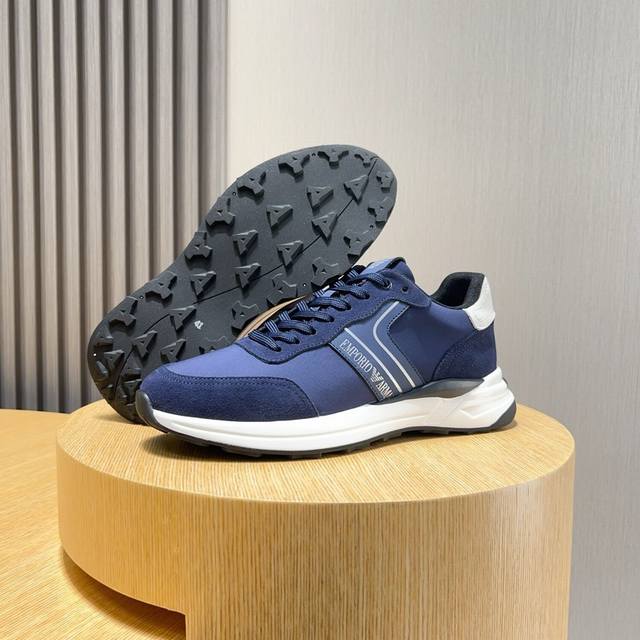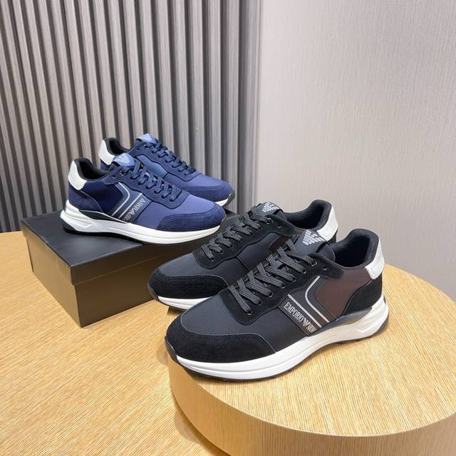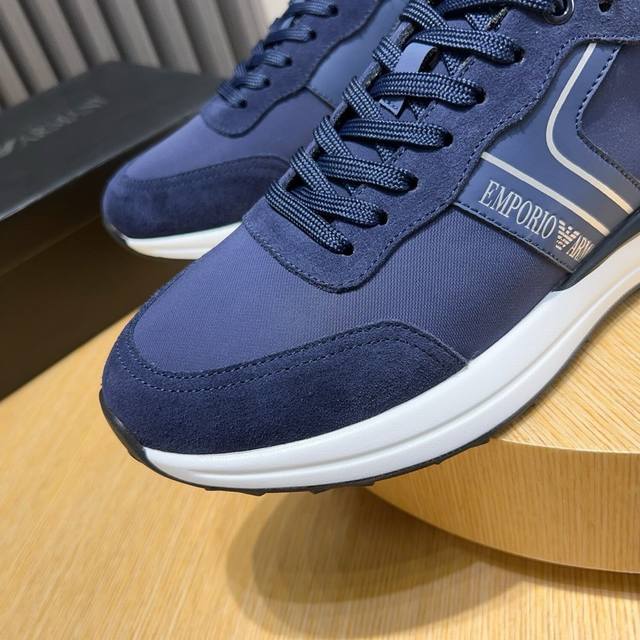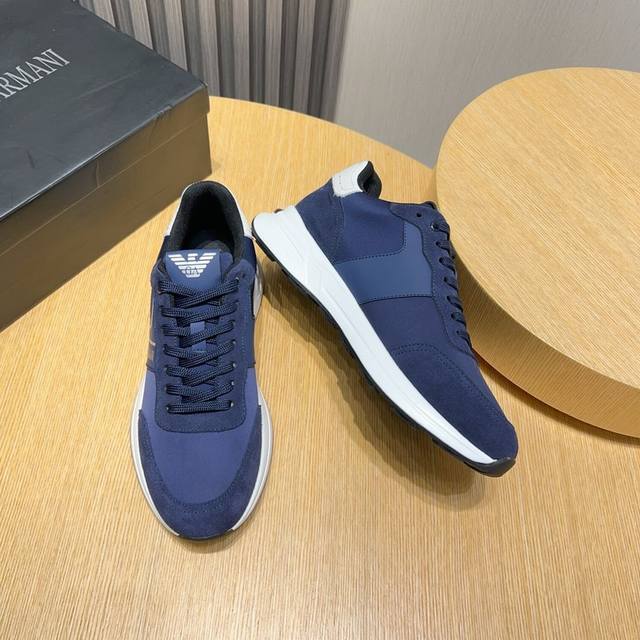 工厂 Armani 阿玛尼新款时尚男士运动鞋精心打造国际品牌 此款休闲鞋集优质面料与精湛工艺于一身,鞋面选用头层牛皮搭配透气布制成!透气网布内里羊皮垫脚。上脚效果帅气有型,轻质tpu大底,脚感轻便舒适!做工精细,值得拥有 Size:38-44 45定做不退换