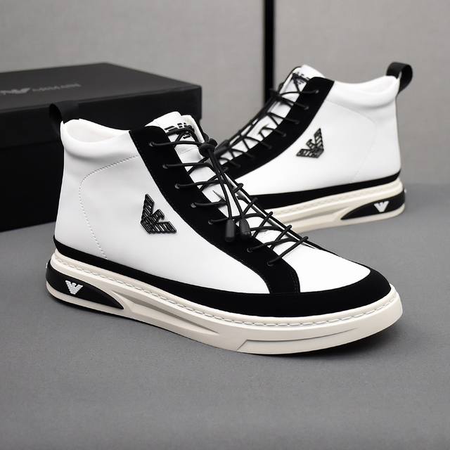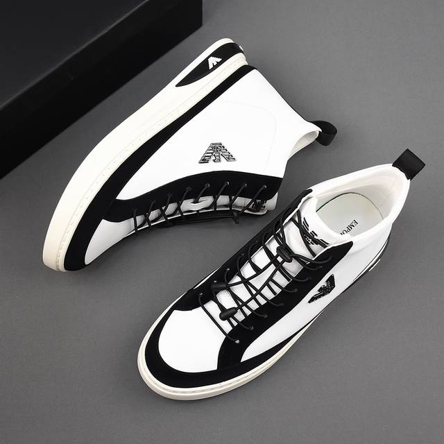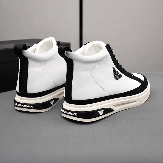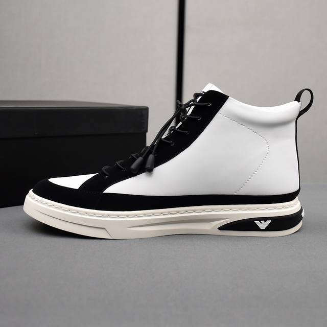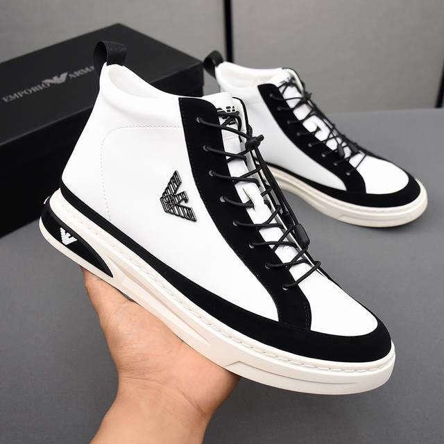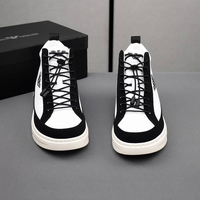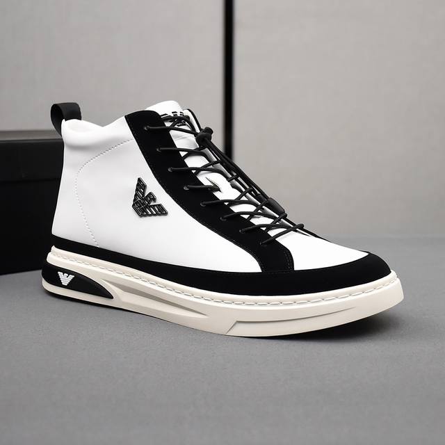 Armani 阿玛尼 爆款 著名奢侈品牌,高端系列休闲男鞋,以经典的设计成为永不落幕的时尚宠儿,经典的休闲造型。采用头层牛皮全羊里品牌专用大底,整体设计和谐统一又不缺乏个性 你值得拥有!尺码38~44 有高帮低帮可选