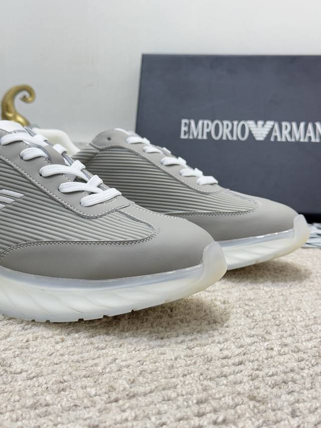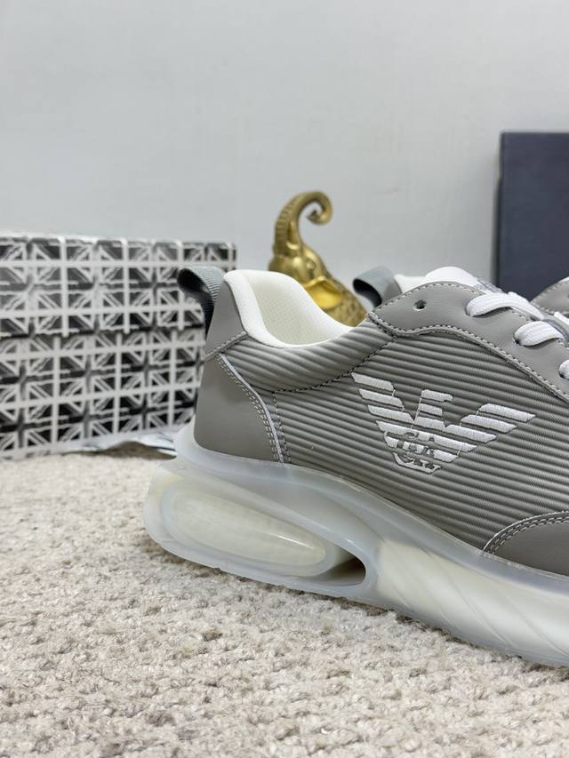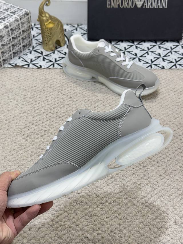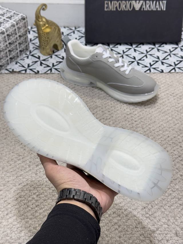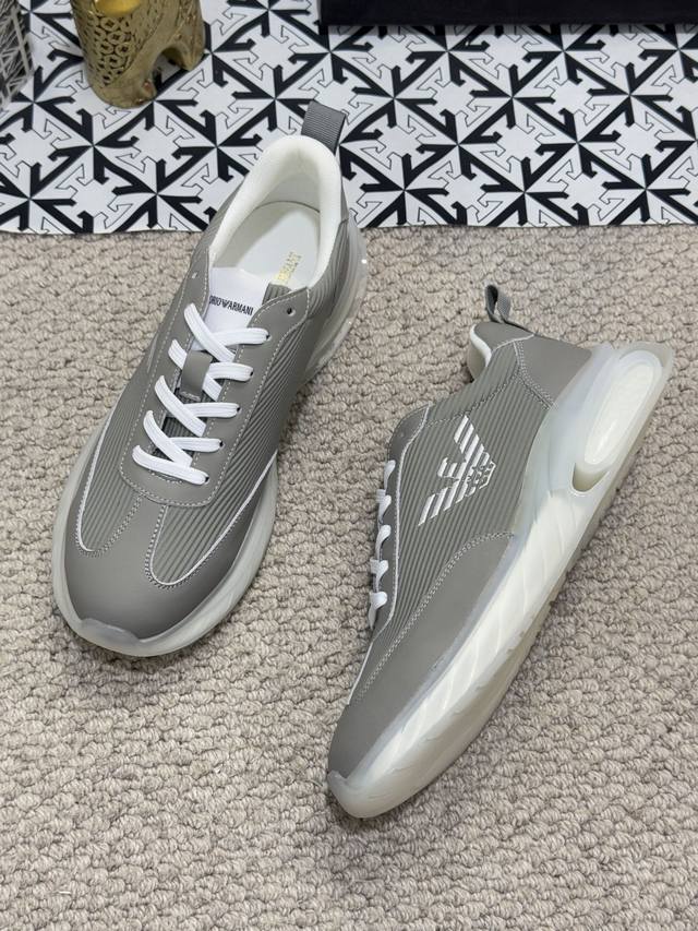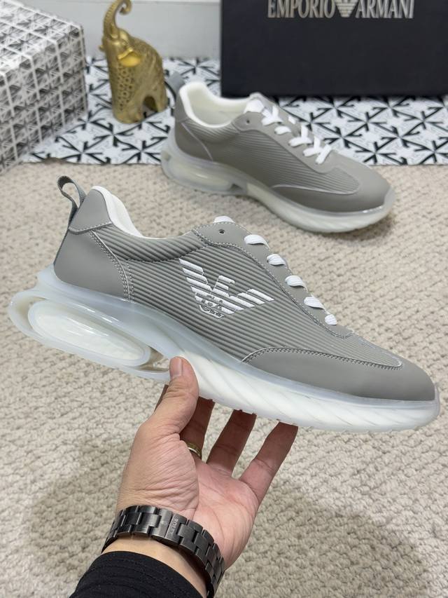 armani 阿玛尼 。透气小布鞋,鞋面采用舒适透气布料,超轻橡胶发泡大底。男款灰色38-44。