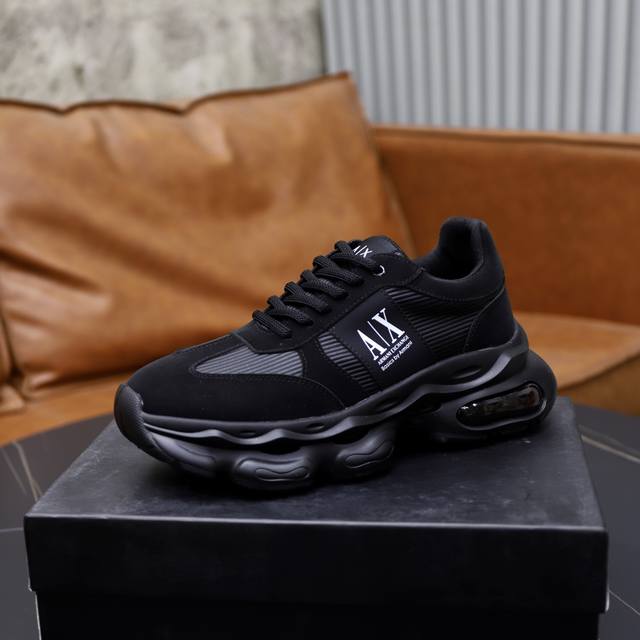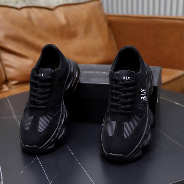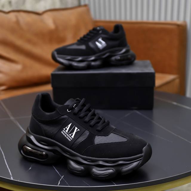 / 出厂价pp: 品牌:阿玛尼 标准码:38-44 45订做 等级:官网同款 材料:原厂牛皮拼接面料 舒适透气内里 轻便柔软耐磨大底 款式类别:男士时尚休闲鞋 跑步