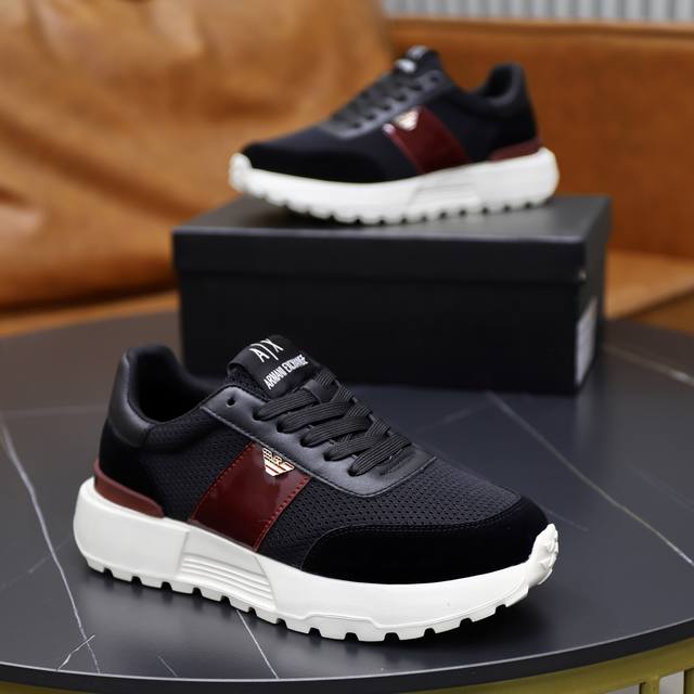 出厂价pp: 品牌:阿玛尼Arm Ni 标准码:38-44 45定制 等级:官网同款 材料:原版磨砂牛皮拼接网布面 舒适透气内里 轻便耐磨大底 款式类别:男士时