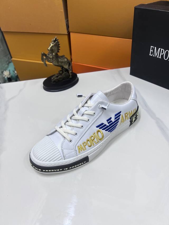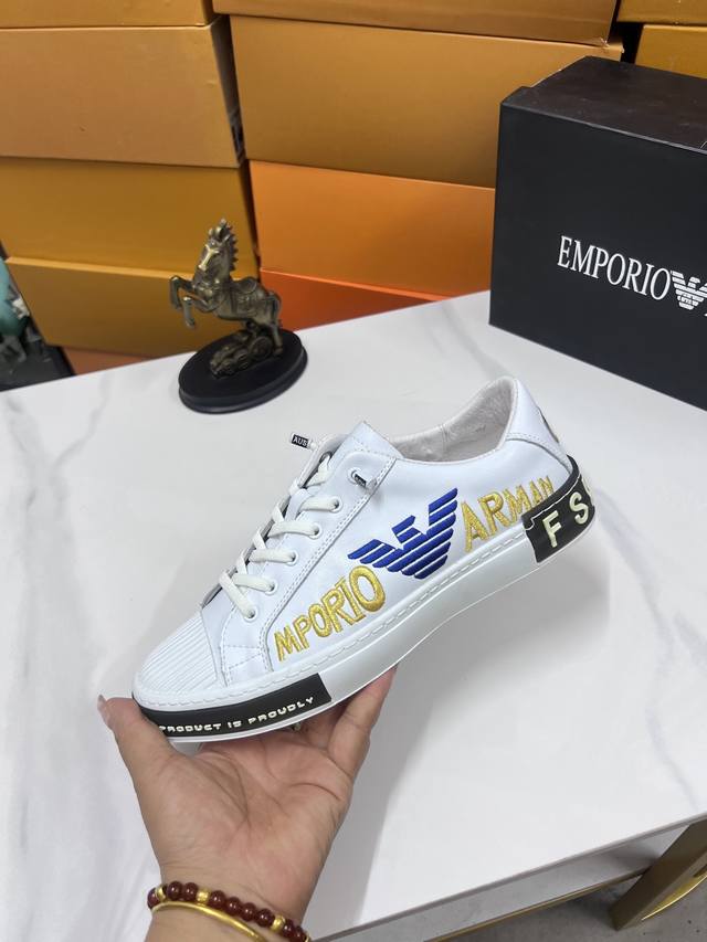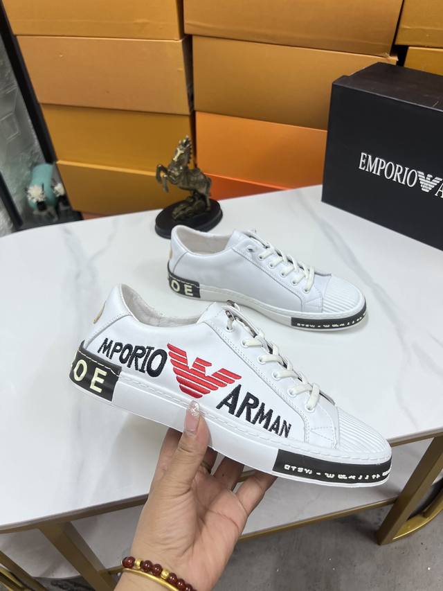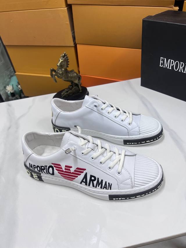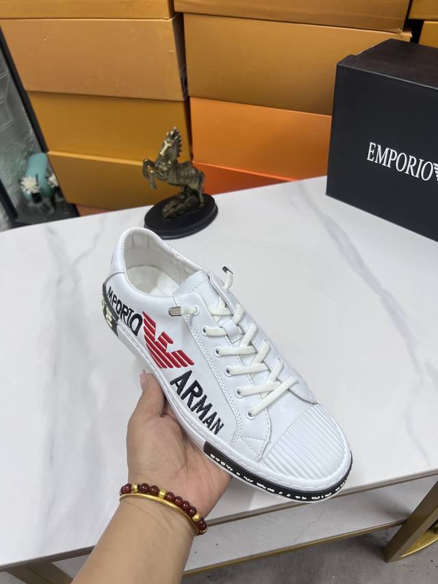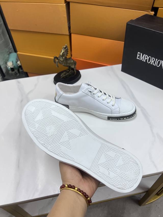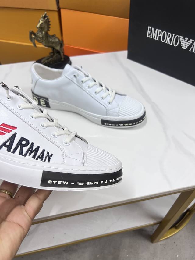 出厂价pp: 阿玛尼 休闲板鞋 官网同步新款 进口打蜡牛皮真皮内里制作原版中底 私家定制滴胶发泡大底大底组合 38-44X