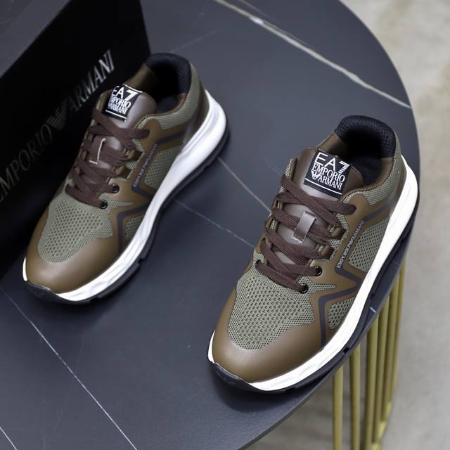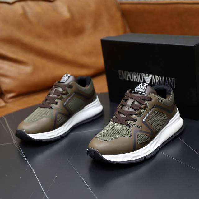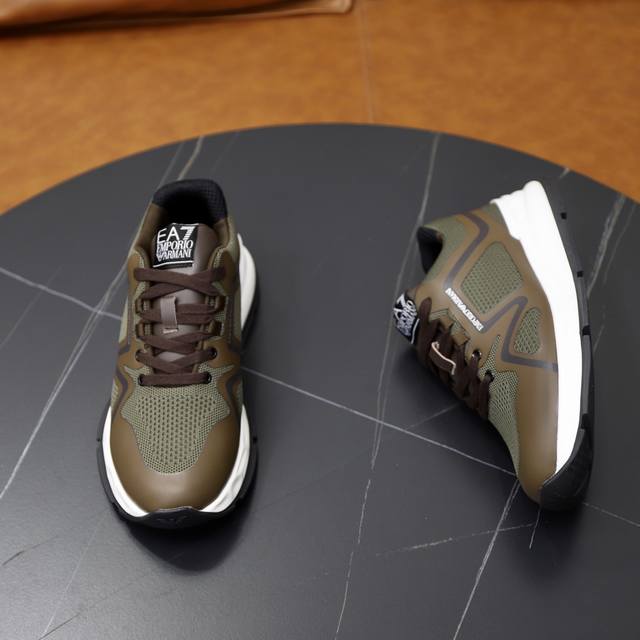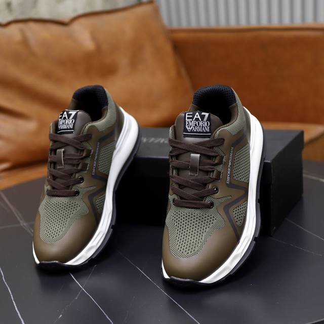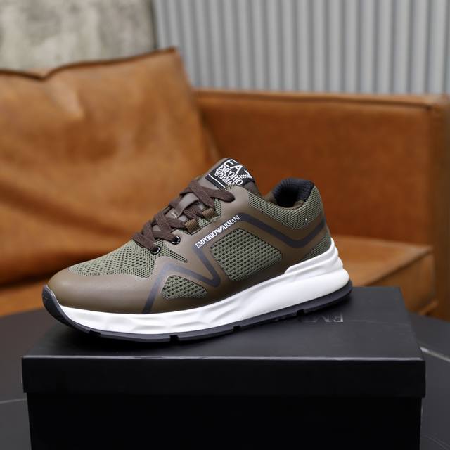 出厂价pp: Armani阿玛尼 新款运动鞋,哎呦这也太酷了吧!极具未来感,户外机能造型,彰显时尚个性必备单品,鞋后跟饰有压印Ea标识,进口滴胶透气网面网里!材料到制作工艺非常到位,专业工厂p生产,发泡耐磨超轻大底,亦具有耐久性,并提供舒适的缓冲效果! 5色选,Size:39-44 45 46定做