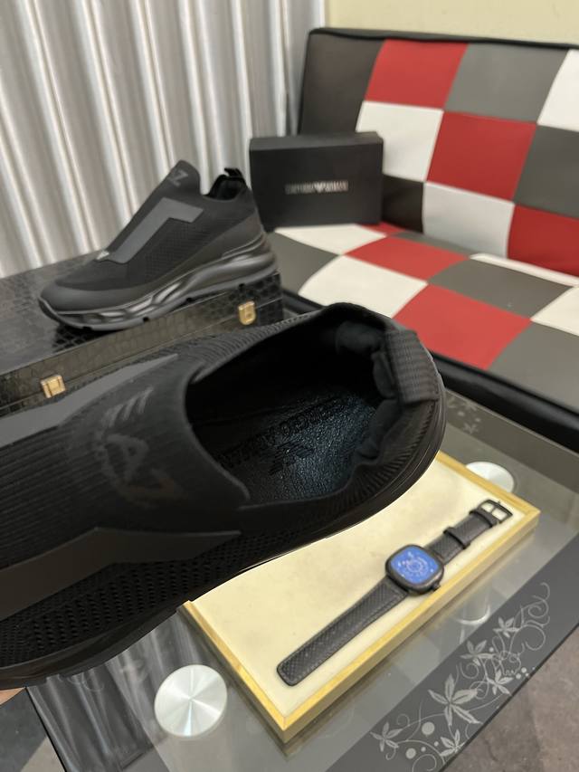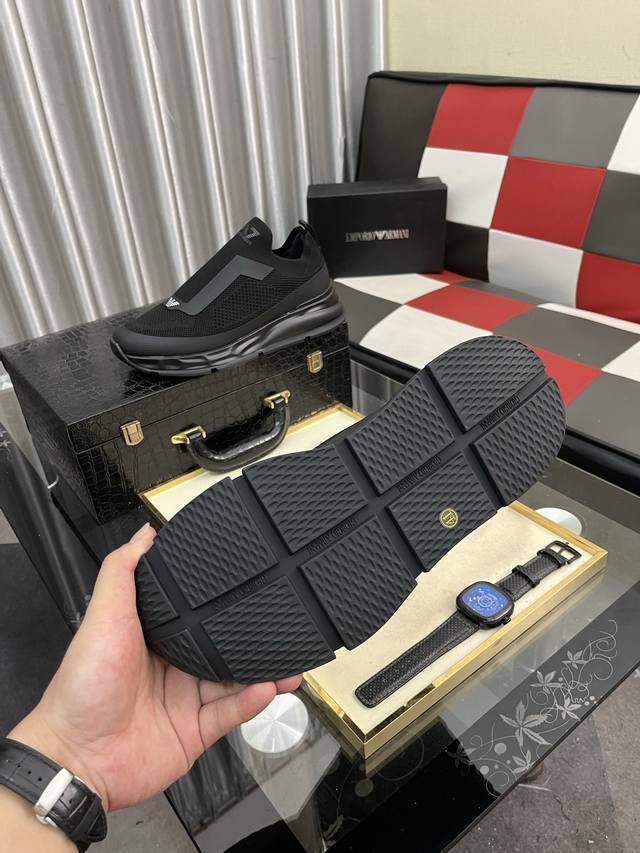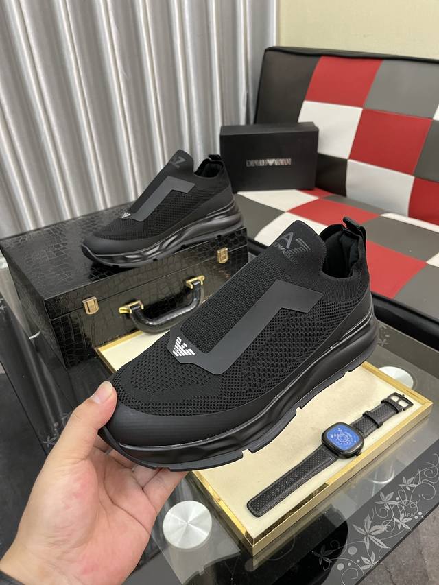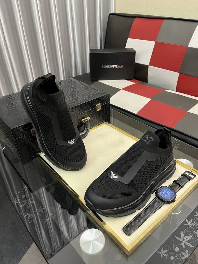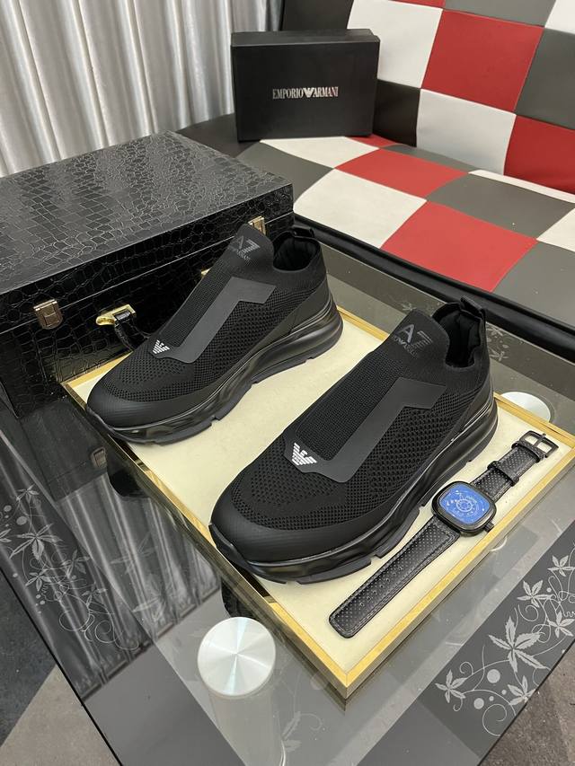 / 出厂价pp: Armani 阿玛尼 官网最新款 专柜同款新品休闲鞋 席卷全球 进口意大利小牛皮面料 上脚效果非常赞 原单品质 码数:39–44 38 45 46