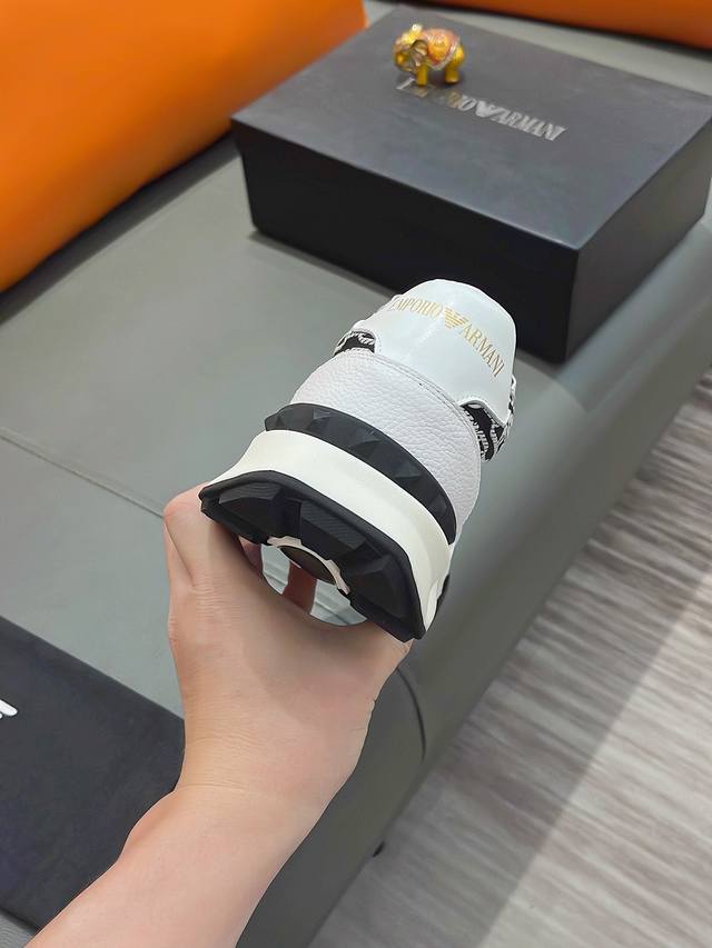 商品名称:Armani 阿玛尼正规码数: 38-44 休闲鞋商品材料:精选 牛皮鞋面,柔软羊皮垫脚;原厂特供大底