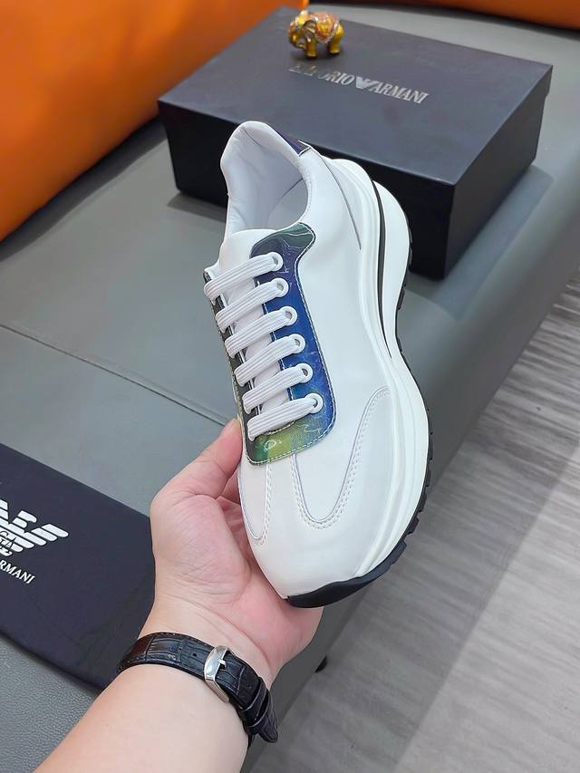 商品名称:ARMANI 阿玛尼 正规码数: 38-44 休闲鞋 商品材料:精选 牛皮鞋面,柔软羊皮垫脚;原厂特供大底。
