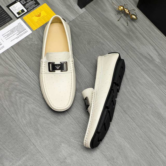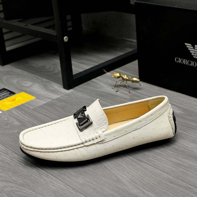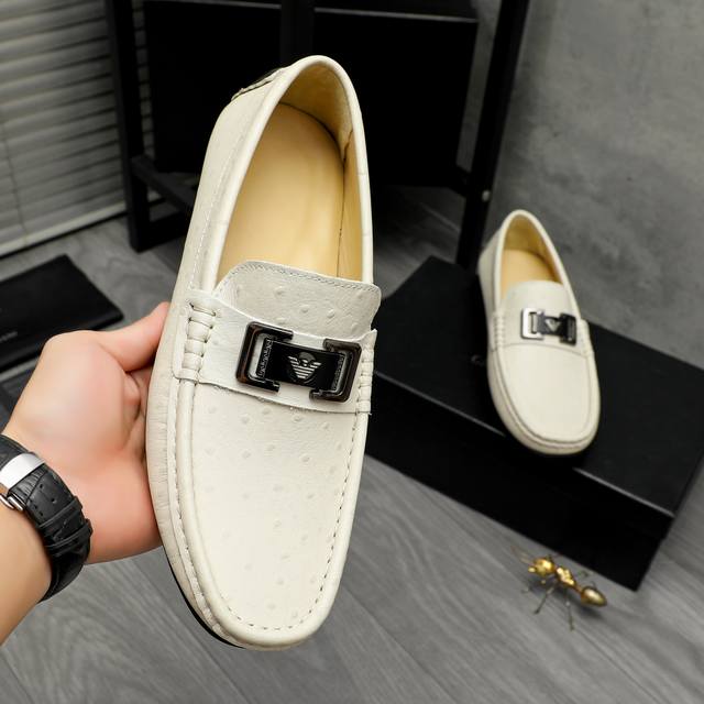 商品商标:Armani 阿玛尼 休闲套脚鞋 正码码数: 38-45 商品材料:精选鸵鸟纹牛皮鞋面 羊皮内里 橡胶大底