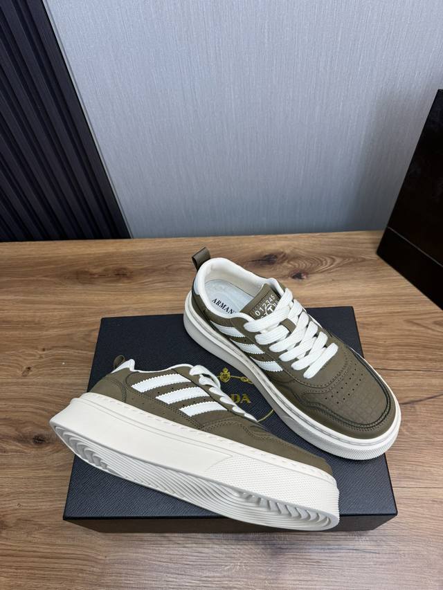 工厂价阿玛尼.新品来袭时尚潮男必备,大牌风范, 材料:鞋面进口牛皮拼接面料+透气网内里,耐磨橡胶大底,39-44