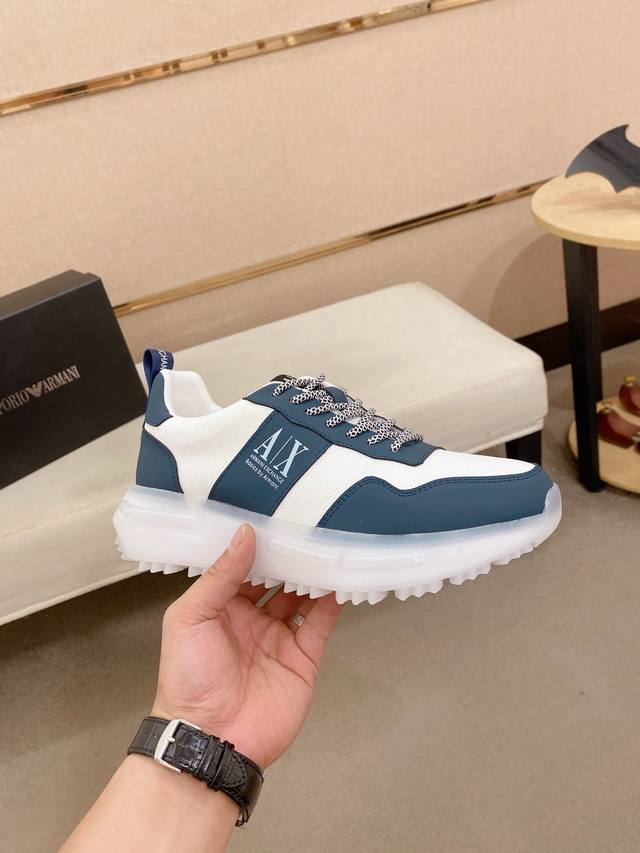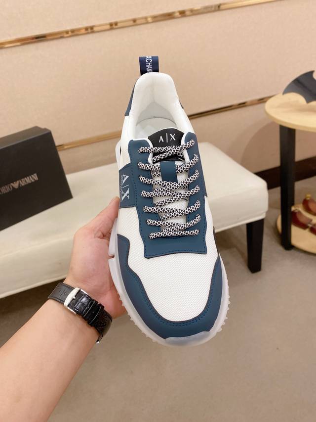 工厂P价 阿玛尼 Armani Exchange 官网最新款 Ax时尚休闲男鞋,爆款版型简洁大气,潮男专属.独有的官网最新品牌元素元素原版装饰,时尚又大方,面料原版牛皮透气网内里,官网指定耐磨休闲大底,专柜经典款实物拍摄38-44。