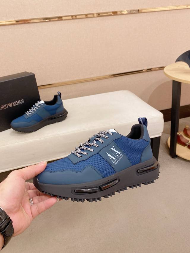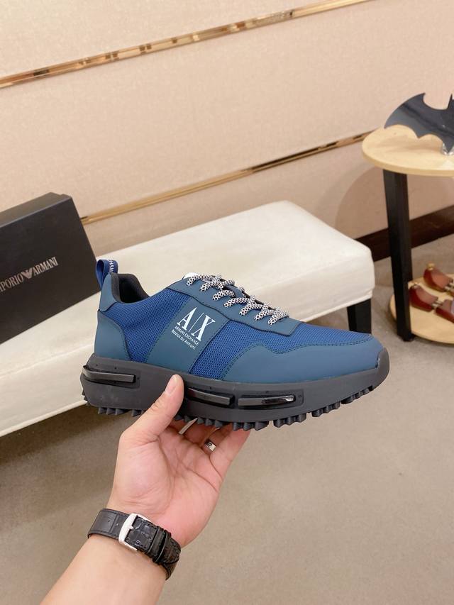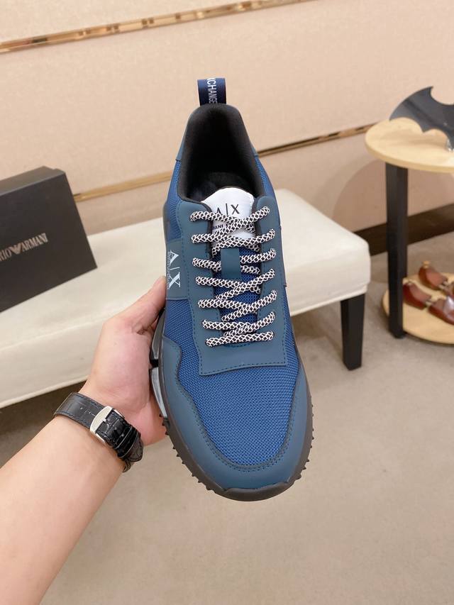 工厂P价 阿玛尼 Armani Exchange 官网最新款 Ax时尚休闲男鞋,爆款版型简洁大气,潮男专属.独有的官网最新品牌元素元素原版装饰,时尚又大方,面料原版牛皮透气网内里,官网指定耐磨休闲大底,专柜经典款实物拍摄38-44。