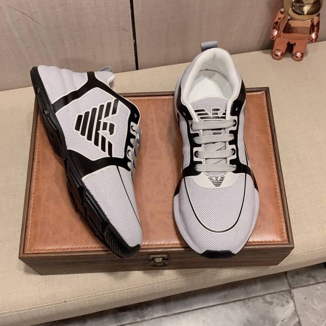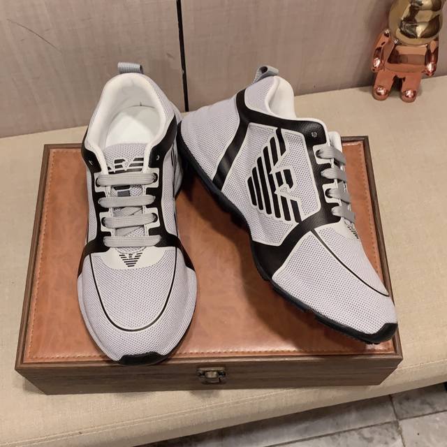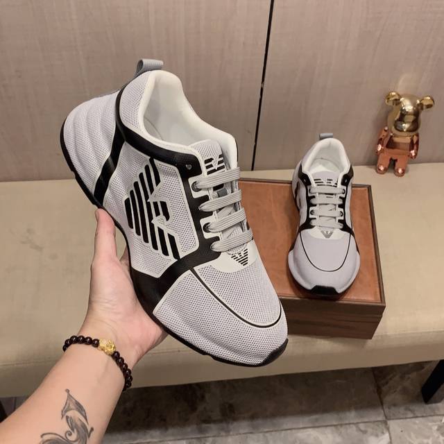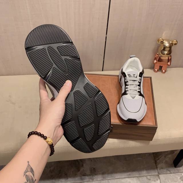 实价: Armani 阿玛尼 运动鞋牛皮面料,透气内里,真气鞋垫,超透气舒适,Pu鞋底轻巧舒适,高级感十足!男码38-44,