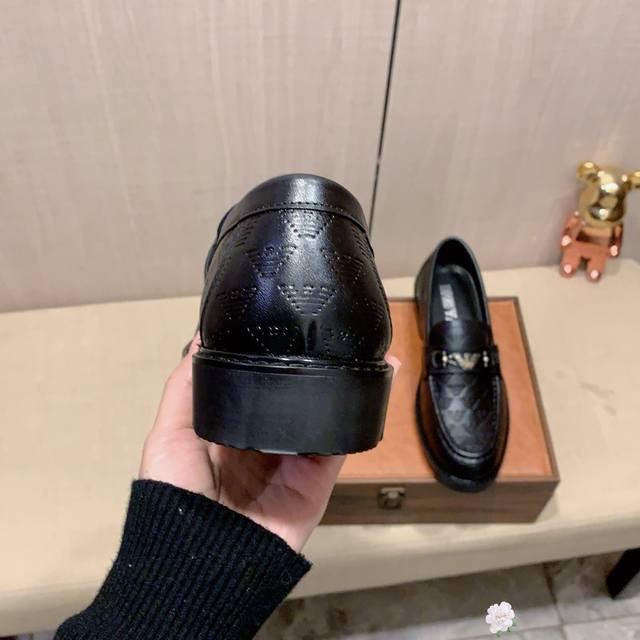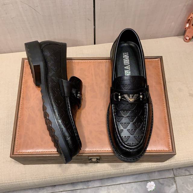 皮鞋新款: 厂价 阿玛尼* 最新爆款休闲商务皮鞋顶端品牌 奢侈~代购,顶级~质量。 鞋面选用进口透气牛皮搭配材质透气羊皮垫脚 精细做工。原版个性时尚柔软橡胶耐磨防滑大底,上脚轻巧舒适,实物拍摄实物更好看,023:码: 38-44