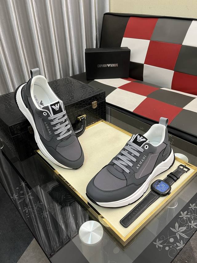 / 调工厂p价 男装男鞋 运动原单 Armani 阿玛尼最新新款休闲鞋 火爆热卖官网同款 原单爆款 .原工厂p牛皮材料1:1原板 牛皮内里,原厂发泡大底。身配件一比