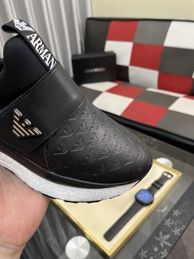 新款: 厂价: 阿玛尼ARMANI* 最新爆款休闲鞋,顶端品牌奢侈~代购,顶级~质量。鞋面選用进口透气牛皮搭配材质透气羊皮垫脚...