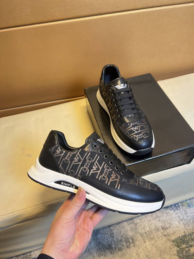 出厂价 Armani 阿玛尼 2024年官网最新款 专柜同款新品休闲鞋 席卷全球 进口意大利小牛皮面料 上脚效果非常赞 原单品质...