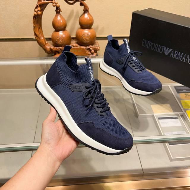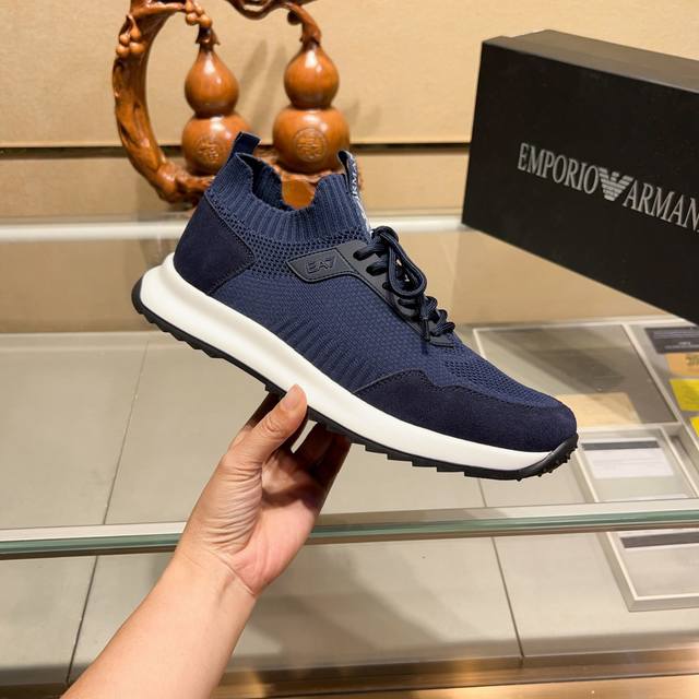 实价: Armani 阿玛尼 运动鞋牛皮面料,透气内里,真气鞋垫,超透气舒适,Pu鞋底轻巧舒适,高级感十足!男码38-44,