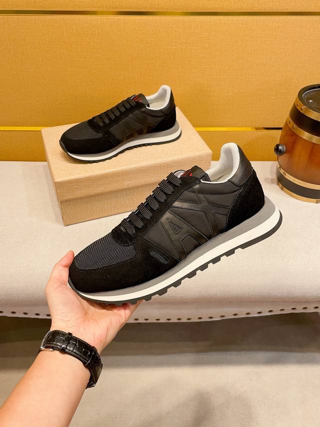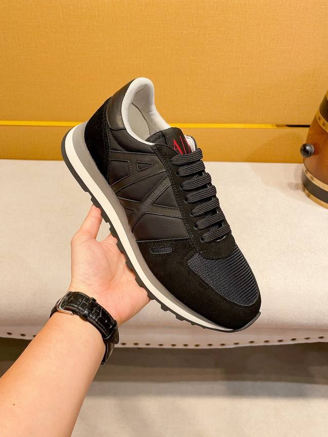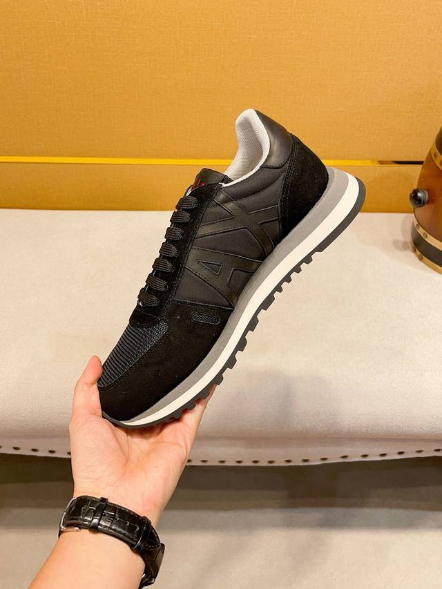 阿玛尼 专柜最新走秀包底时尚运动风男鞋 也有同款高帮 最新专柜同步运动男鞋...
