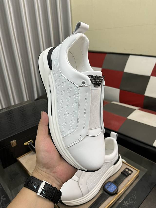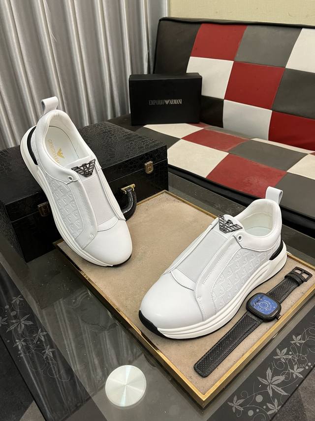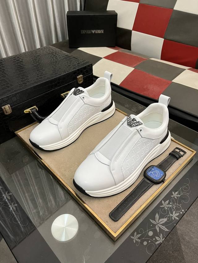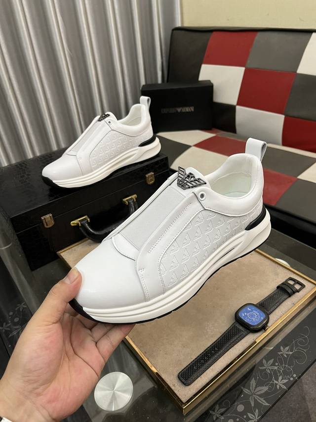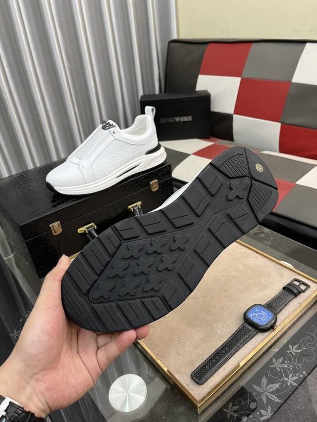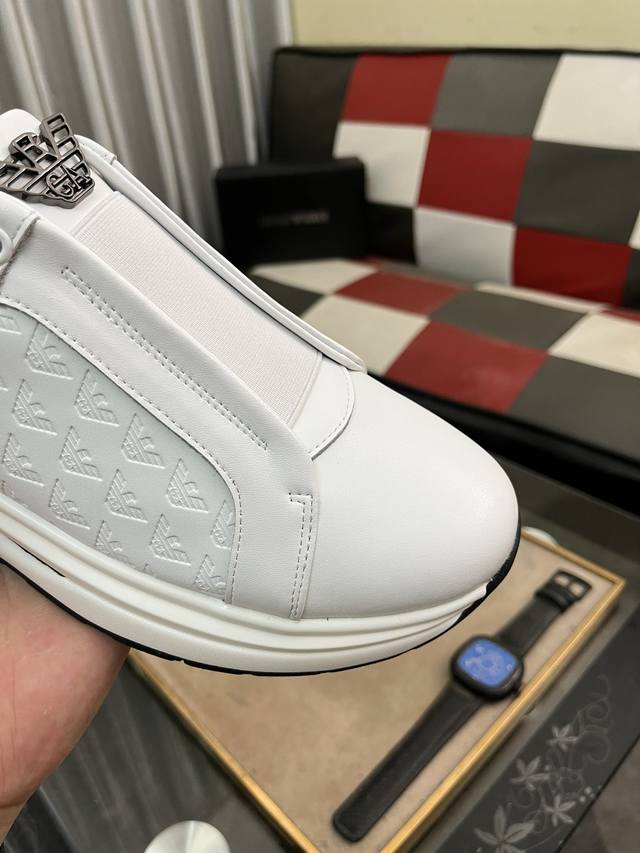 实价 Armani 阿玛尼 2024年官网最新款 专柜同款新品休闲鞋 席卷全球 进口意大利小牛皮面料 上脚效果非常赞 原单品质 码数:38–44