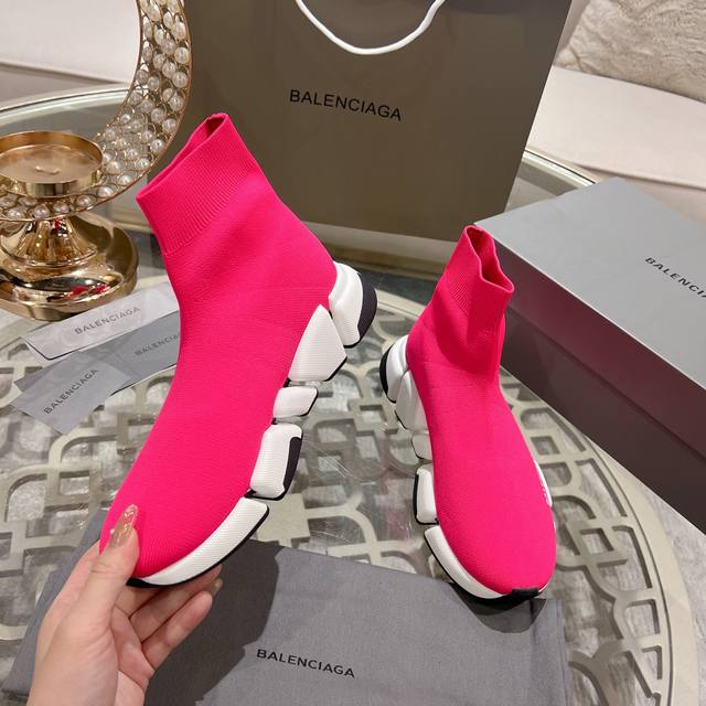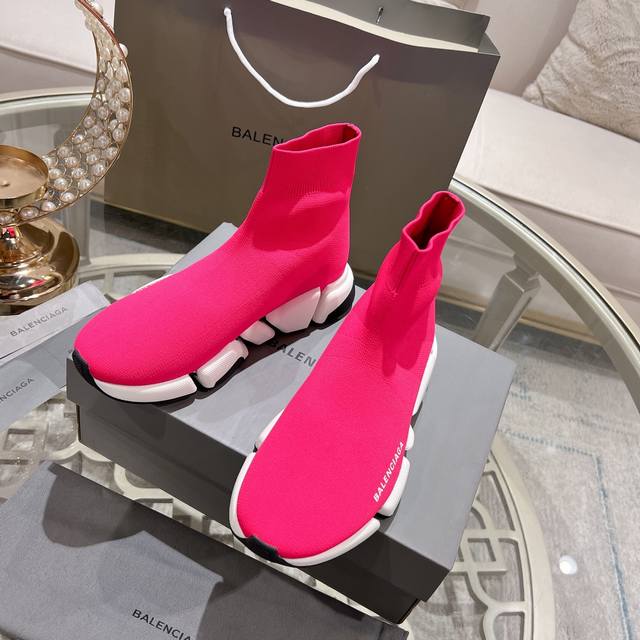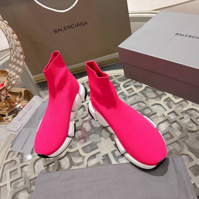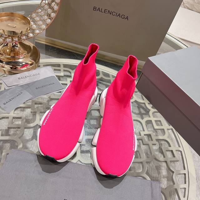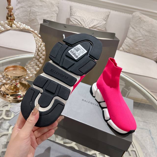 原版购入开发!市面顶级版本,品质升级,各个细节包括包装都对比zp!全新升级tpu抽真空压模组合大底!上脚更舒适好穿!3D针织面料透气不变形!Logo和原版一样,请区别市场通货!巴黎世家最新包装!