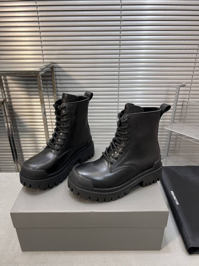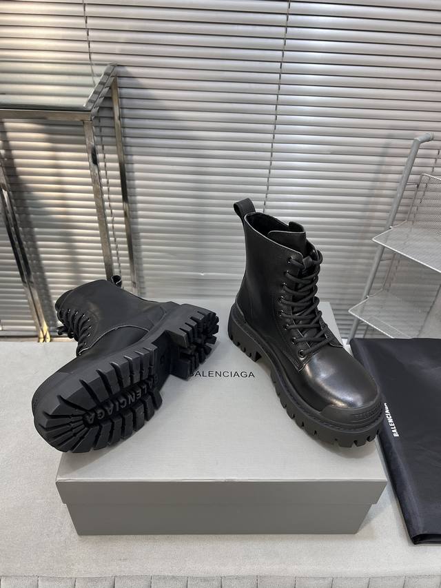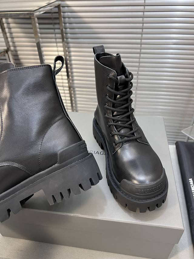 巴黎世家 复古马丁靴纯原版本 复古马丁靴强势出货 重工打造 所有配件均通过定做出产正品裁片 正确合金钉钉粗细、位置、大小正确 侧边tpu 透气孔匹配意产原版 ,Tpu软底 原版一致 ”Balenciaga“ 大底logo 立体感十足 原厂皮料 采购原厂网纱 情侣款:女35-39.男39-45