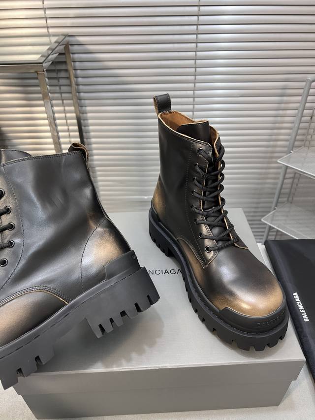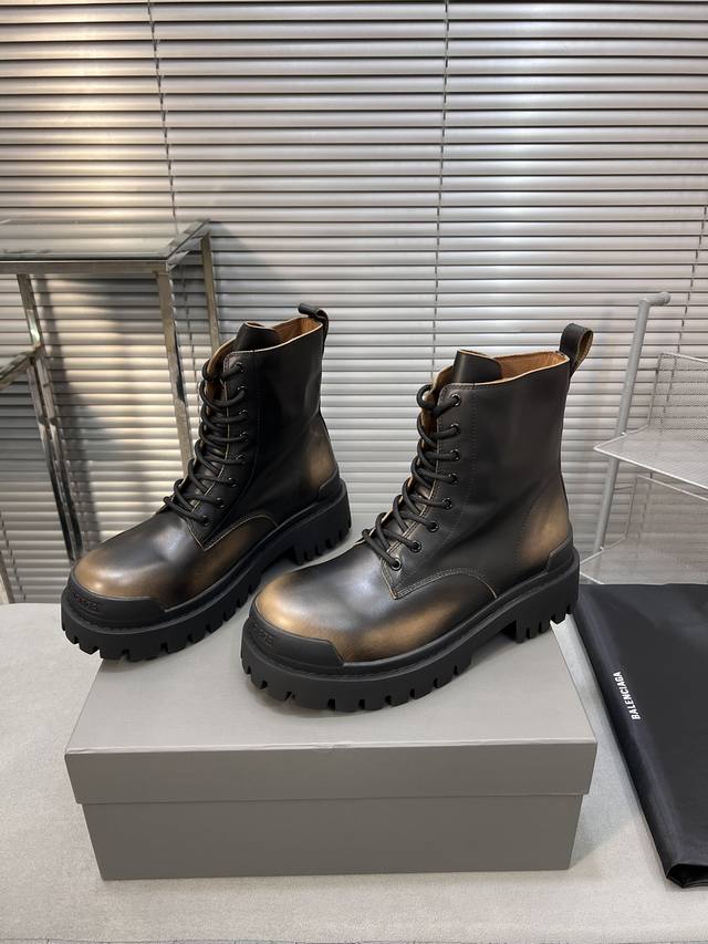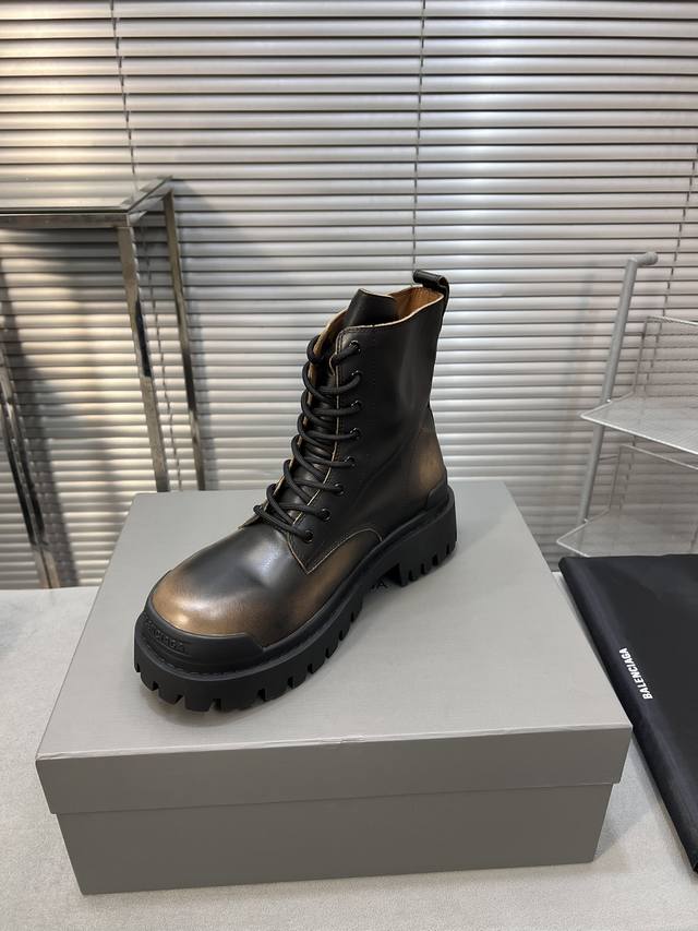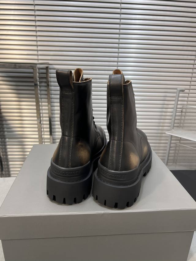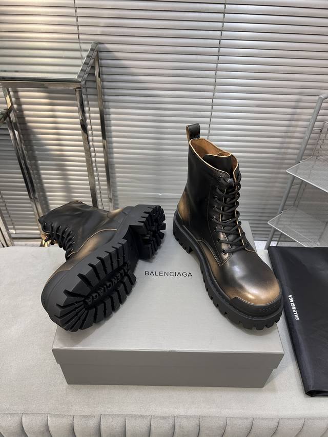 巴黎世家 复古马丁靴纯原版本 复古马丁靴强势出货 重工打造 所有配件均通过定做出产正品裁片 正确合金钉钉粗细、位置、大小正确 侧边tpu 透气孔匹配意产原版 ,Tpu软底 原版一致 ”Balenciaga“ 大底logo 立体感十足 原厂皮料 采购原厂网纱 情侣款:女35-39.男39-45