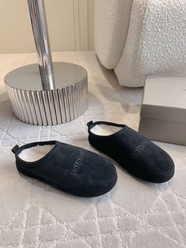 出厂价 Balenciag*新款羊毛保暖半拖鞋 丑萌丑萌得上脚超级时髦 厚实的羊毛太保暖啦 超级显腿细 原版购入开发 顶级版本 鞋面牛反绒 内里垫脚进口澳洲羊毛