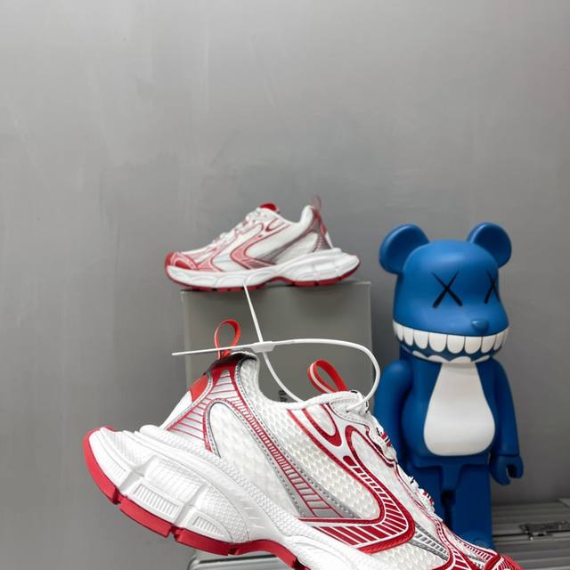 原版购入开发 做货 Balenciaga 3Xl Sneaker 整体鞋型汲取了balenciaga Track和balenciaga Runner两款鞋型的创作思路 相当于把 Track鞋身的外框拆了下来 同时继承了 Runner的流线造型和 Track扁平的鞋头。在鞋面前段另加了一副绑着的的鞋带 用作凹造型。原厂档案开发,细节精准对位官方,私模组合大