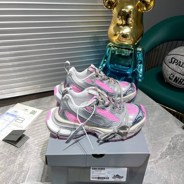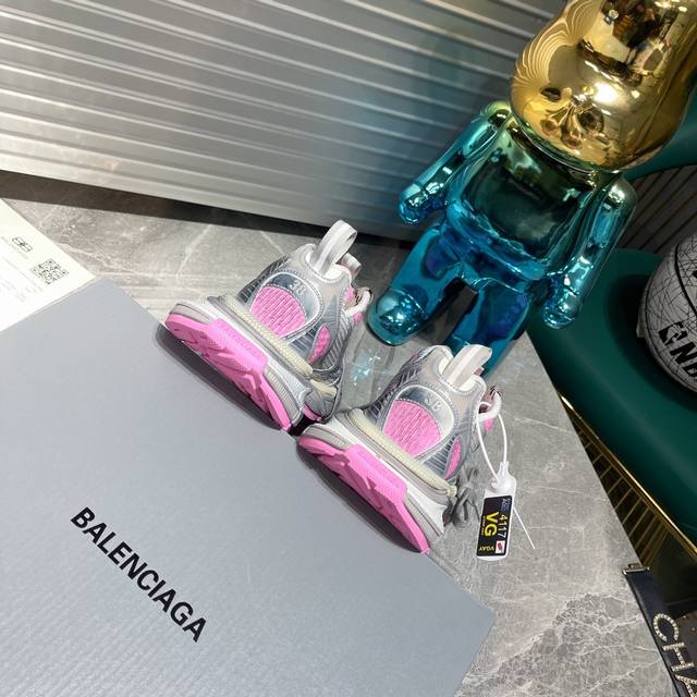 原版购入开发 做货 Balenciaga 3Xl Sneaker 整体鞋型汲取了balenciaga Track和balenciaga Runner两款鞋型的创作思路 相当于把 Track鞋身的外框拆了下来 同时继承了 Runner的流线造型和 Track扁平的鞋头。在鞋面前段另加了一副绑着的的鞋带 用作凹造型。原厂档案开发,细节精准对位官方,私模组合大底原装