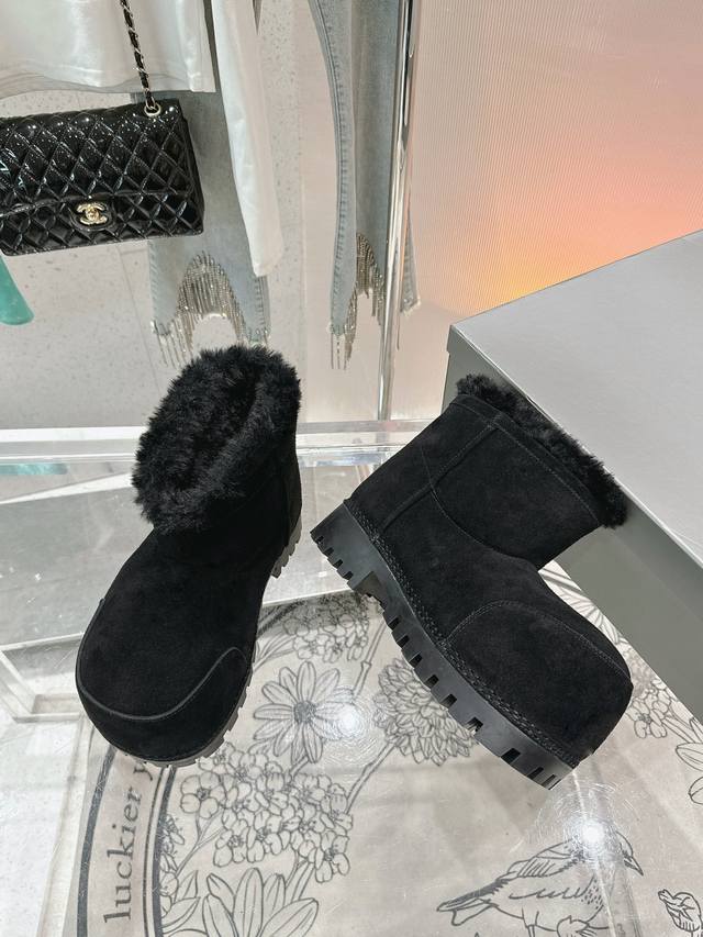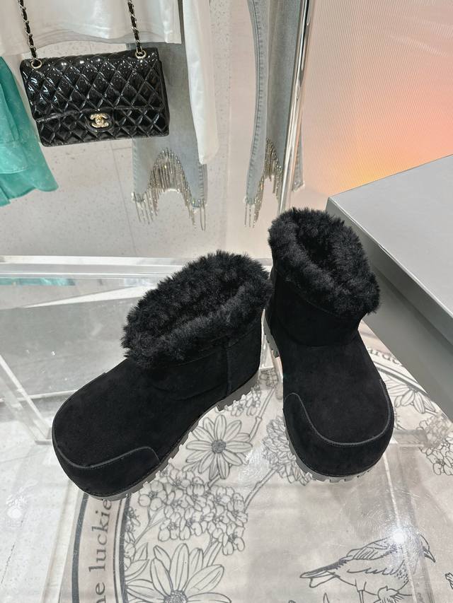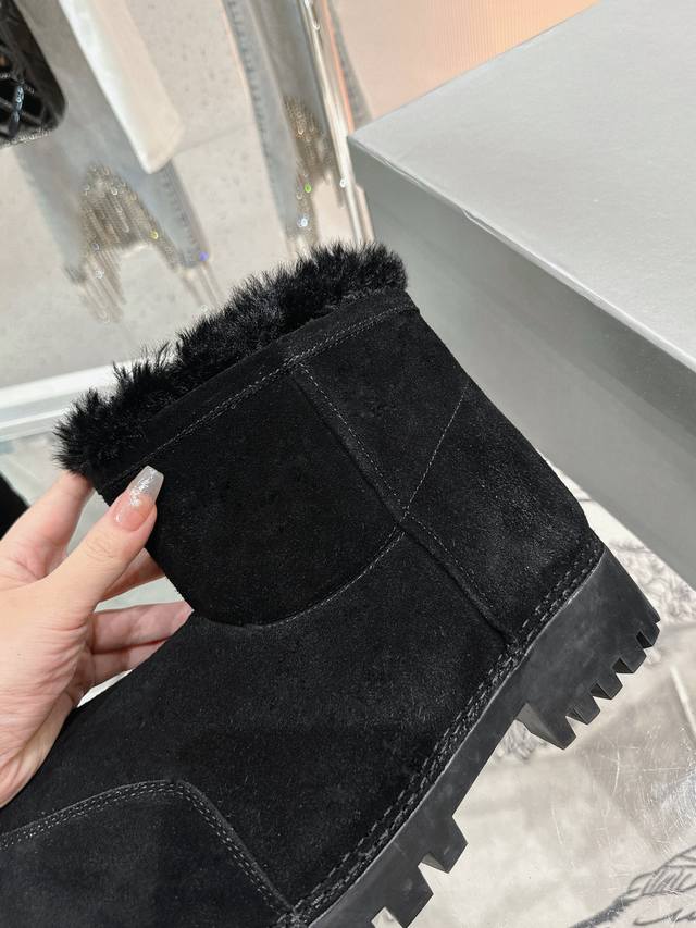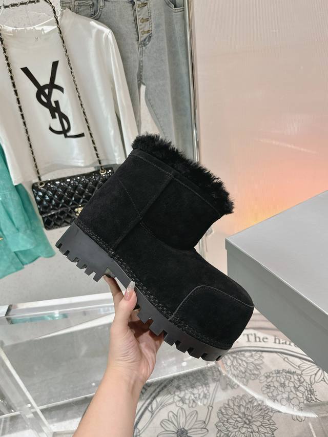 巴黎世家 新款胖头靴雪地靴情侣鞋羊羔毛滑雪靴