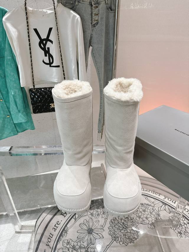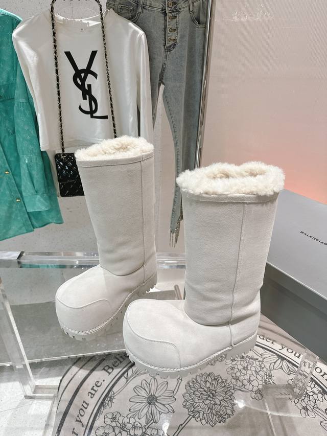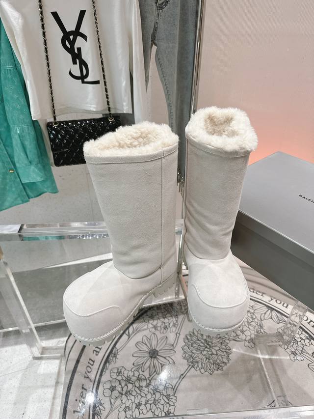 巴黎世家 新款胖头靴雪地靴情侣鞋羊羔毛滑雪靴