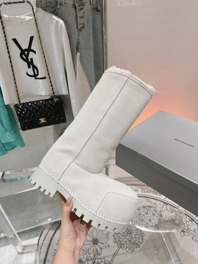 女 男 巴黎世家 新款胖头靴雪地靴情侣鞋羊羔毛滑雪靴 原版购入 Zp解剖开发 鞋面选用意大利进口材料结合澳洲羊毛,内里和垫脚均是采用整张澳洲羊毛,毛质特别厚实保